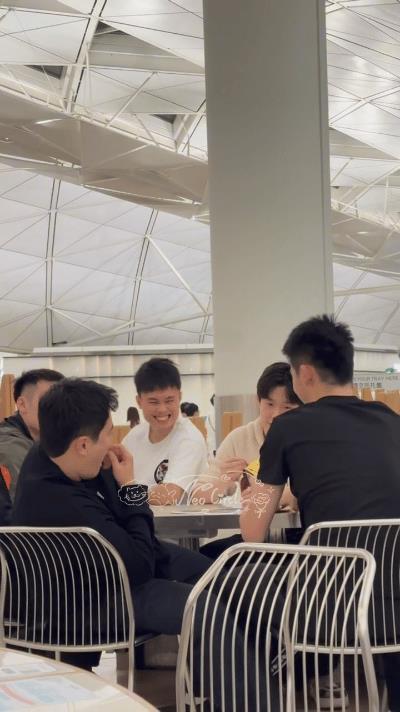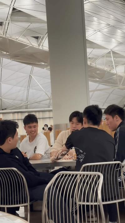 王楚钦一伙人在香港机场打牌? 国乒今天一早从北京出发,要在香港转机停留5小时,到