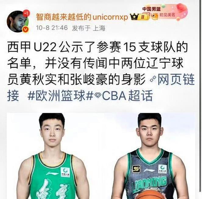 一切都是最好的安排!辽篮小将张峻豪和黄秋实的名字暂时没能出现在西甲U22名单中,