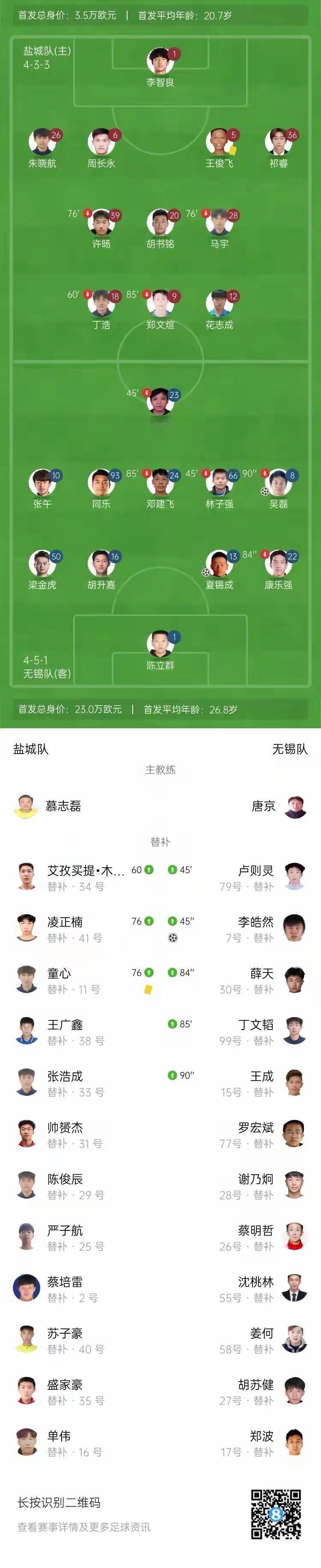 无锡3-0客胜盐城进苏超半决赛&将战南通吴磊夏锡成李皓然破门 无锡队以一场精