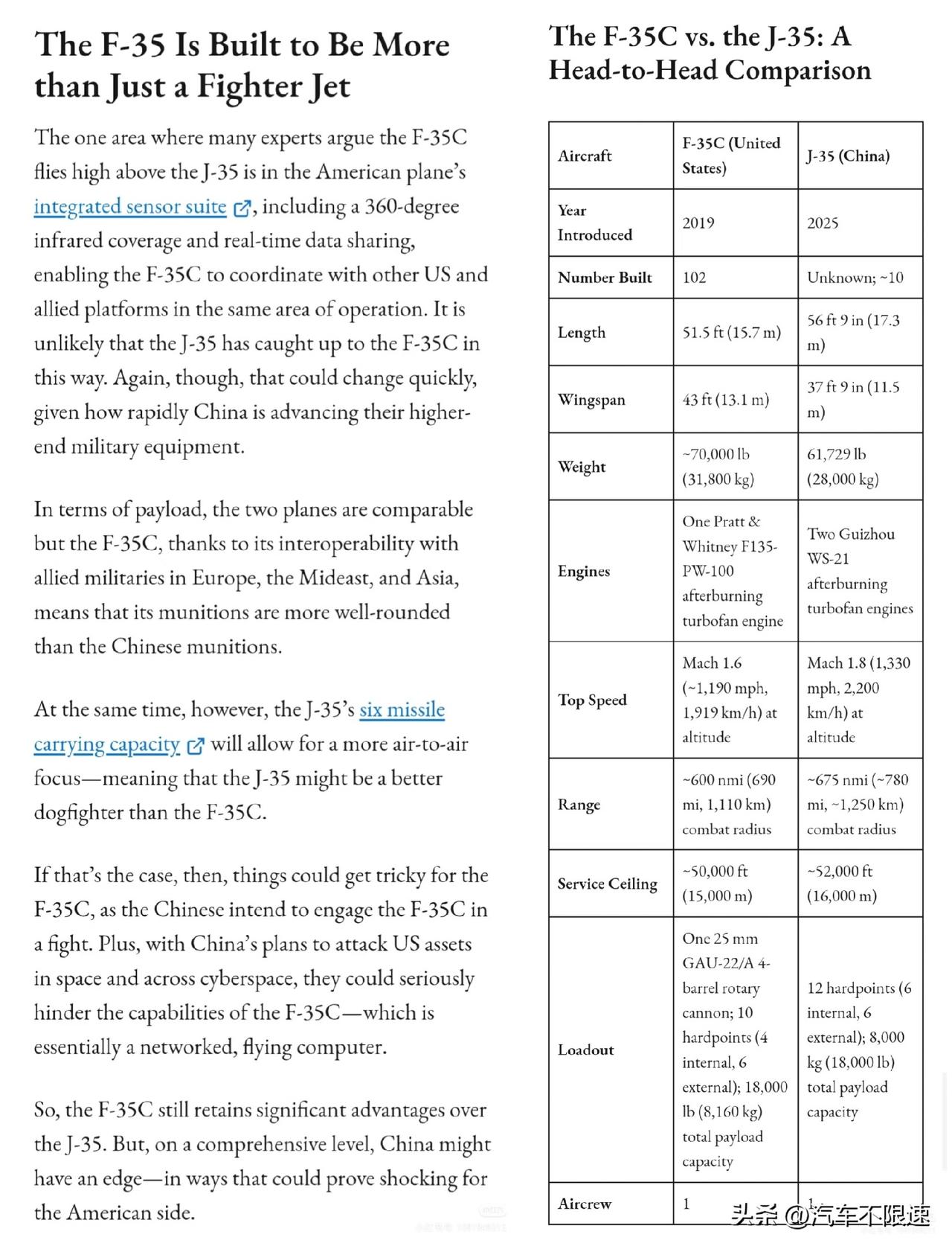 老美发布对比数据,歼35与F35对比,各项数据来看,F35只差了一丢丢,但综合性