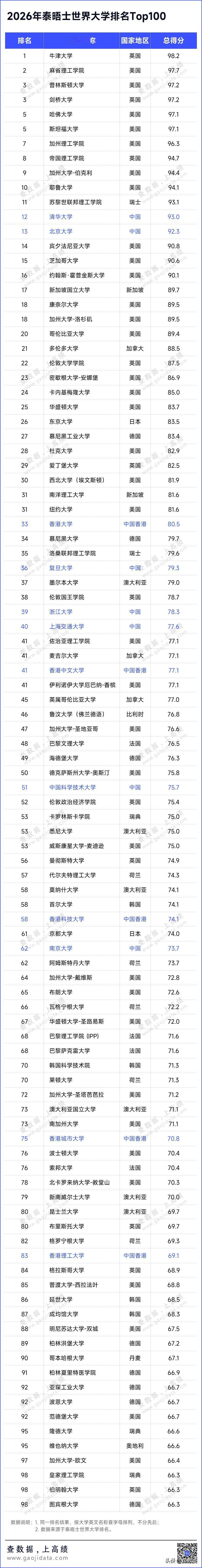 全世界 哪些大学最好? 泰晤士高等教育(THE)发布了2026年世界大学排名的结果。2026年泰晤士高等教育世界大学排名涵盖115个国家/地区,共有2,191所高校上榜,再创历史新高。排名的绩效指标仍然分为5个方面,分别为:教学、研究环境、研究质量、国际展望和产业。