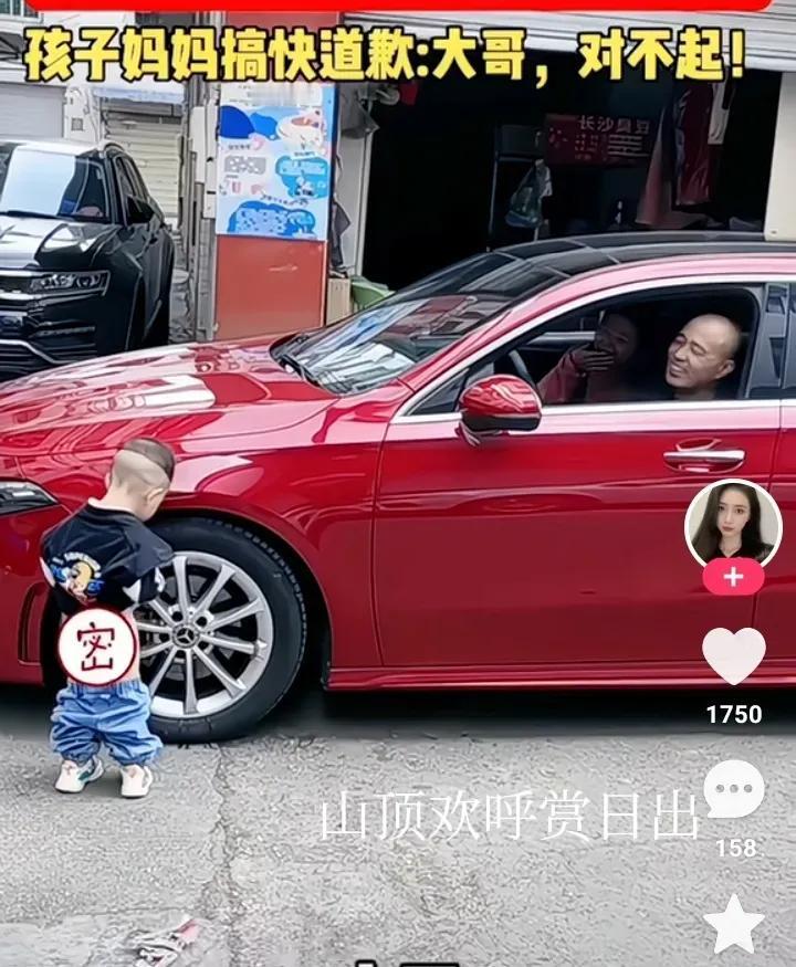 三岁小孩尿急尿在了别人的车轮上。 司机大哥全程坐在车里笑,没有责怪。 孩子的妈妈