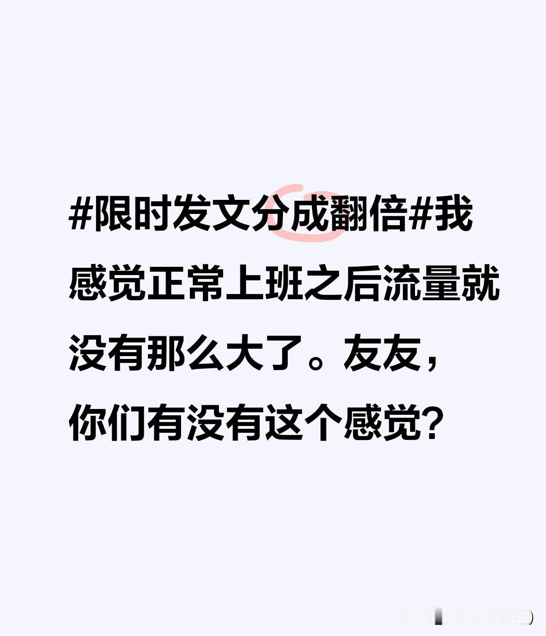 限时发文分成翻倍我感觉正常上班之后流量就没有那么大了。友友,你们有没有这个感觉?