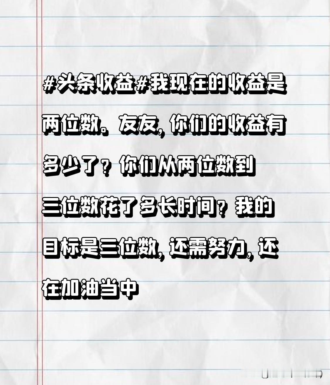 我现在的收益是两位数。 友友,你们的收益有多少了?你们从两位数到三位数花了多长时