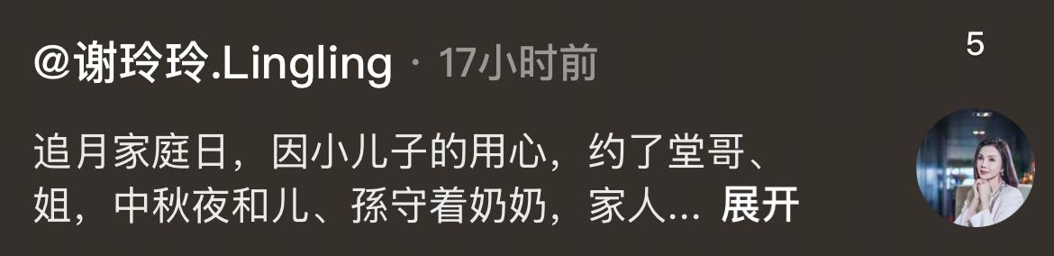 谢玲玲前婆婆林余宝珠真的好精神,再有两个月的时间就101岁了。 郭德纲曾说:谁能活到最后,谁就是艺术家。这句话真的太适合各个行业,只有活着,才会有机会,只有活着,你才能诉说历史。 10月8号,谢玲玲分享中秋节聚会的画面,不得不感慨,谢玲玲真的是人生赢家,虽然与林建岳离婚,但她却获得了婆婆的支持。 要知道余宝珠可不是省油的灯啊,她不是林百欣的大房,但却一直把持着家族的所有产业,将其弄到手之后,便交给了几个儿子打理,手段绝对不是一般人可以匹及的。 晒出的中秋聚餐照中可发现,余宝珠满头银发,状态丝毫不弱于谢玲玲。见的其面前还摆放着说明书,孙辈也是依偎在其身旁,如此温馨的画面真的让人羡慕。 最难得是,她对谢玲玲非常的疼爱,自始至终也是认定了这个“儿媳妇”,至于林建岳的小女友,余宝珠根本不搭理。 能够将婆婆征服,可见谢玲玲也是高情商,毕竟到了她这个年纪,已经不再需要所谓的爱情,要不然还得伺候“糟老头子”,属实不划算,不如拿着钱,到处潇洒。
