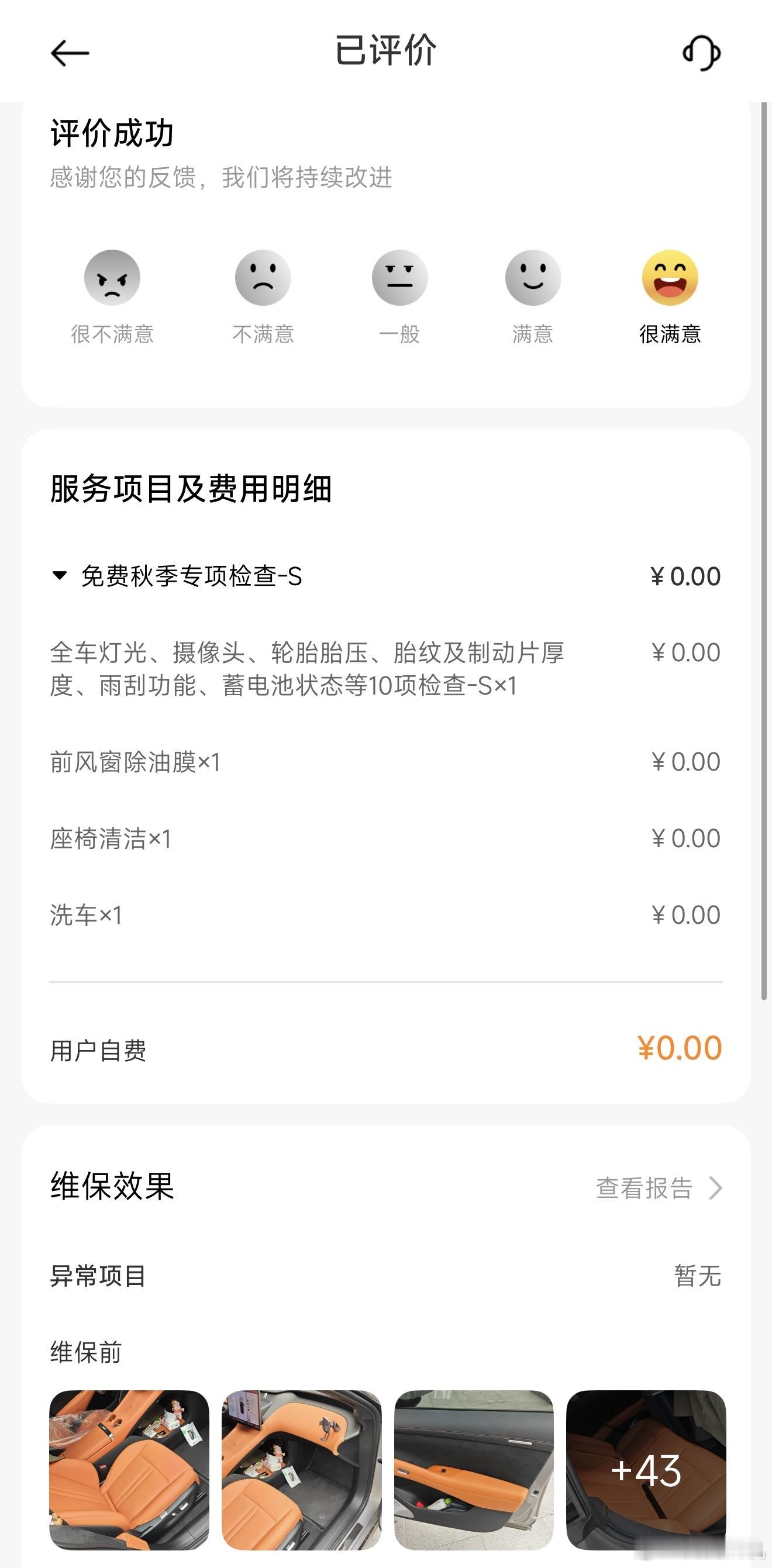 这次小长假虽然我没出门但是也预约了小米的免费深度检查和清洁的秋季关怀,也算是给车做了个简单的保养,而且后期还会给免费给车辆清洗干净和充满电,服务这一块确实没得说。