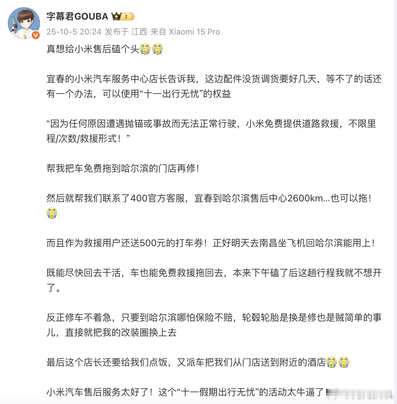 还看到有车主享受到小米逆天的“出行无忧”服务,2600公里免费拖车!想想自己掏运费得上万,这服务是真金白银补贴用户啊。