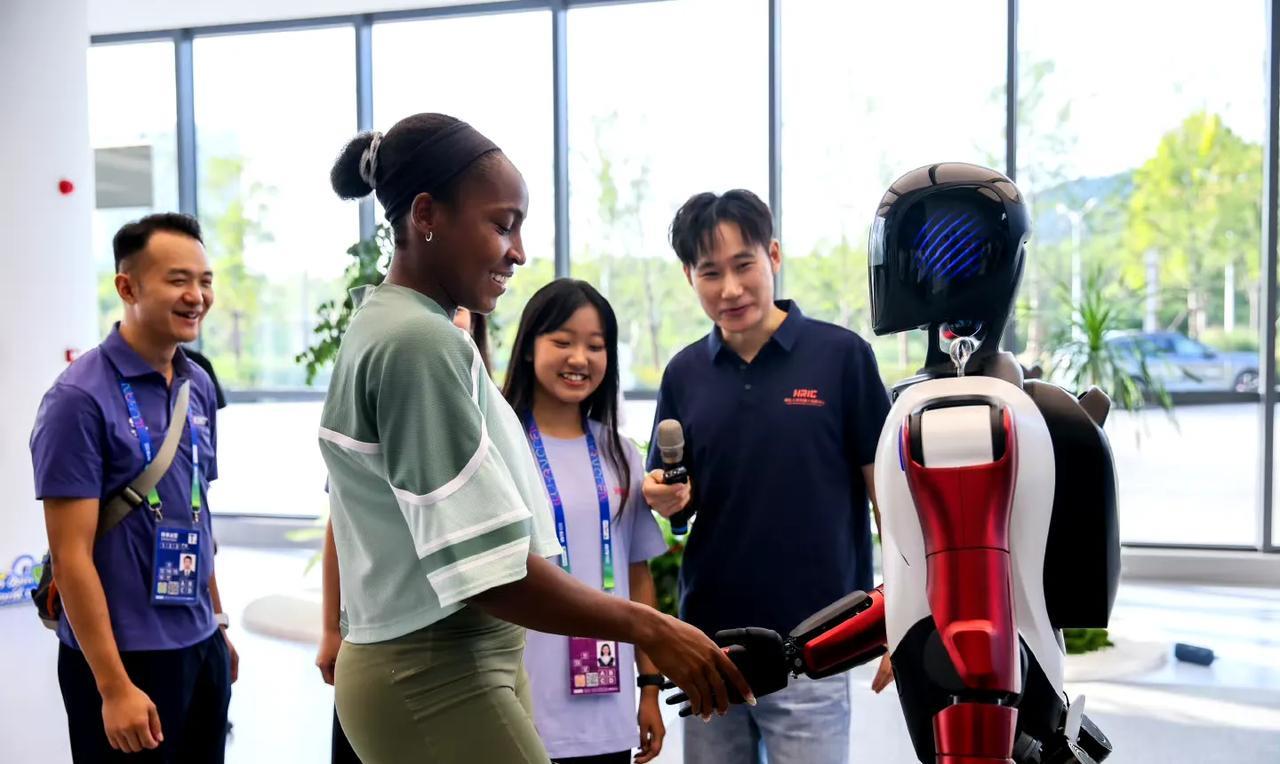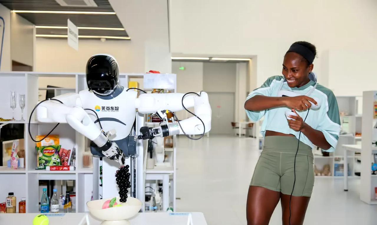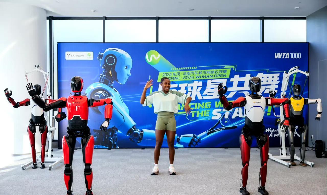 真没想到,高芙在训练之余还去打卡了湖北人形机器人创新中心。 芙妹对这里充满了好奇,一会儿拿起手机咔咔拍照,一会儿操作机器臂精准拿水果,还饶有兴致地与机器人共舞…… 四台机器人伴舞,芙妹跳得很嗨,全程笑得合不拢嘴。 不愧是00后球员,对新事物、高科技接受得很快。 来到中国赛季,芙妹的整活已经不局限于一般的商宣活动,而是进入了next level了! #新锐创作者成长计划#