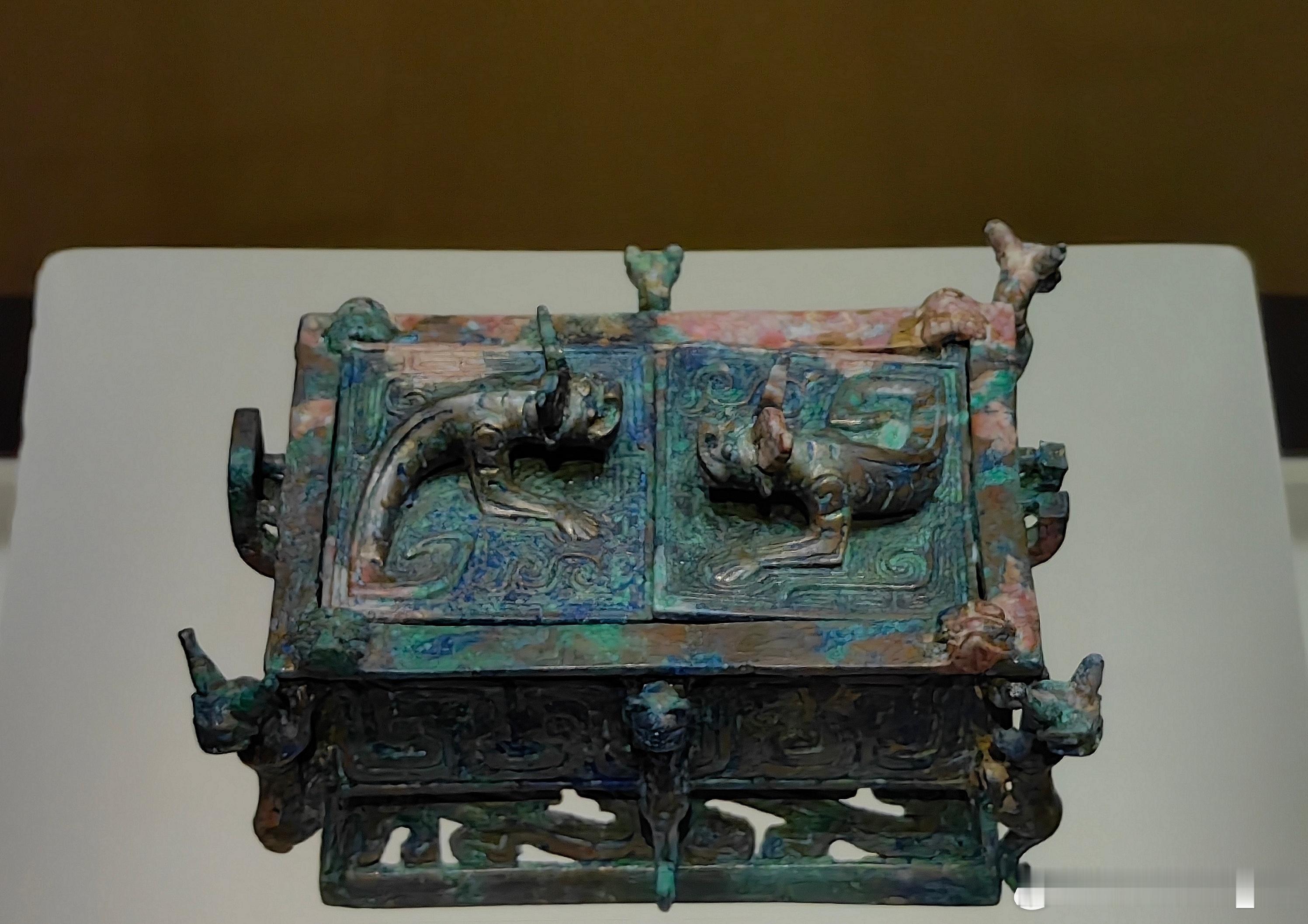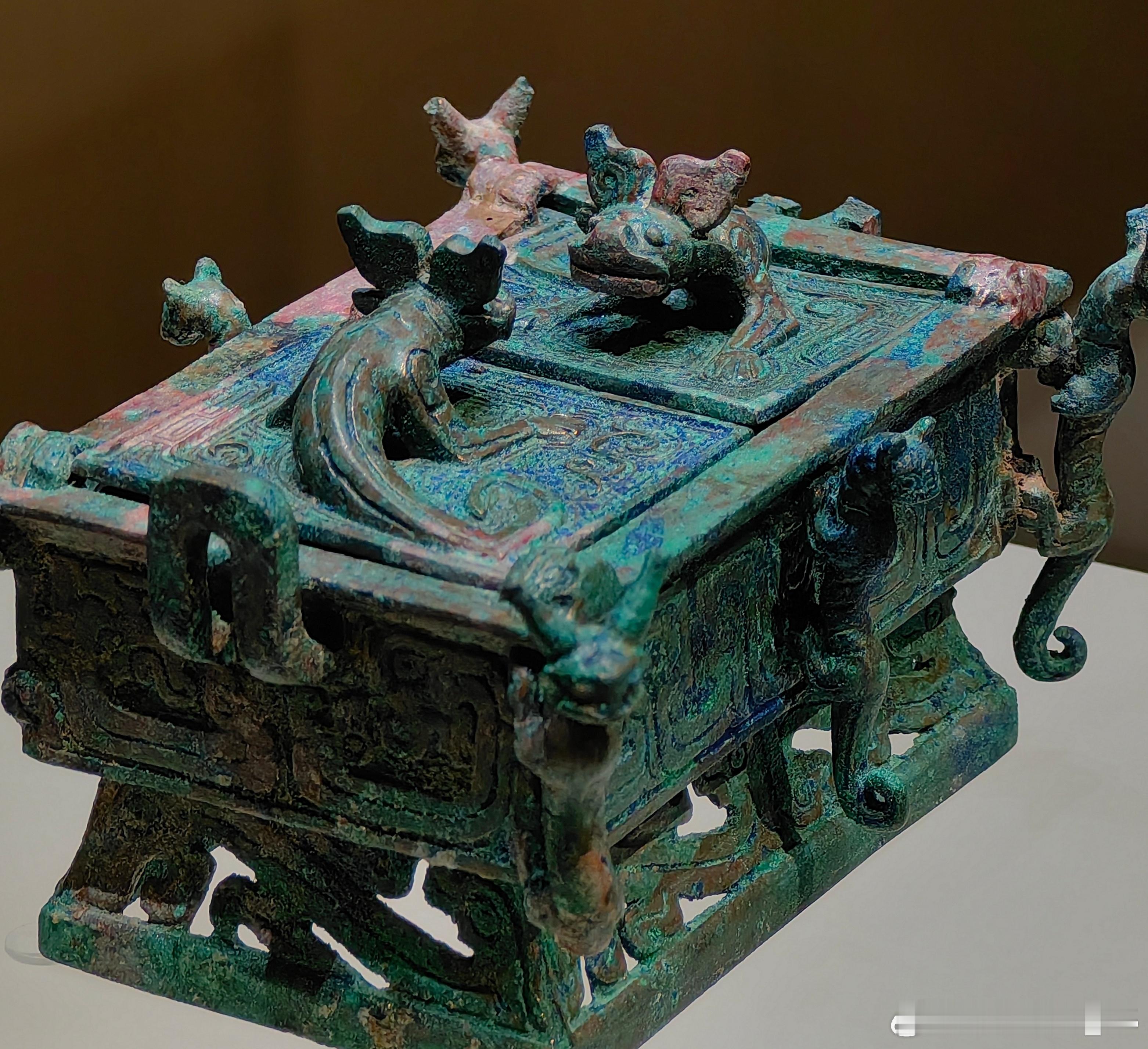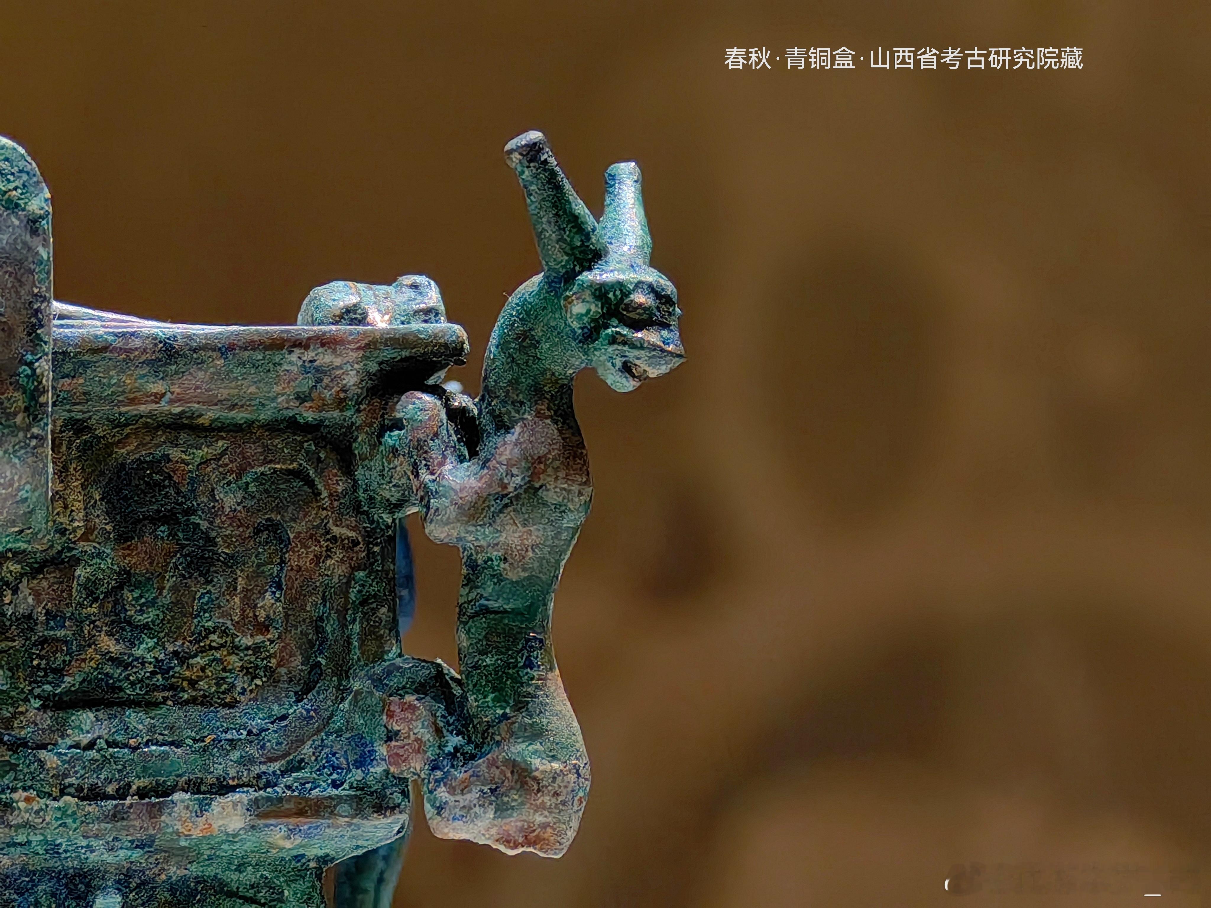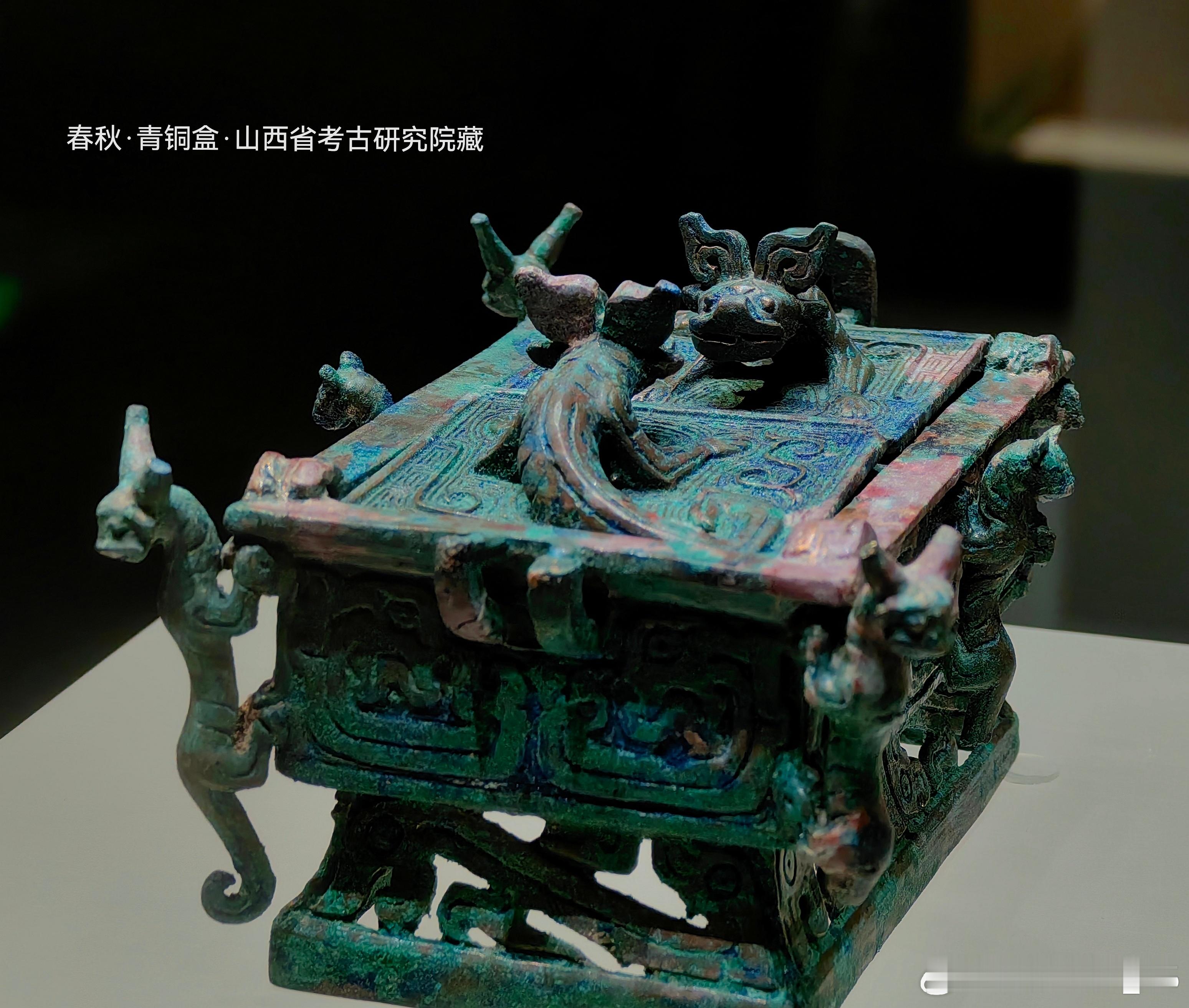 春秋时期,青铜器在工艺和艺术表现上有了新的发展。高浮雕的动物造型,精美的纹饰,是研究春秋时期青铜器铸造技术、艺术风格以及社会文化的重要实物资料。检测表明,铜盒内的残留物是由油脂、植物精油、朱砂及方解石、霰石为主要成份的化妆品,是先秦时期化妆品应用的重要物证。