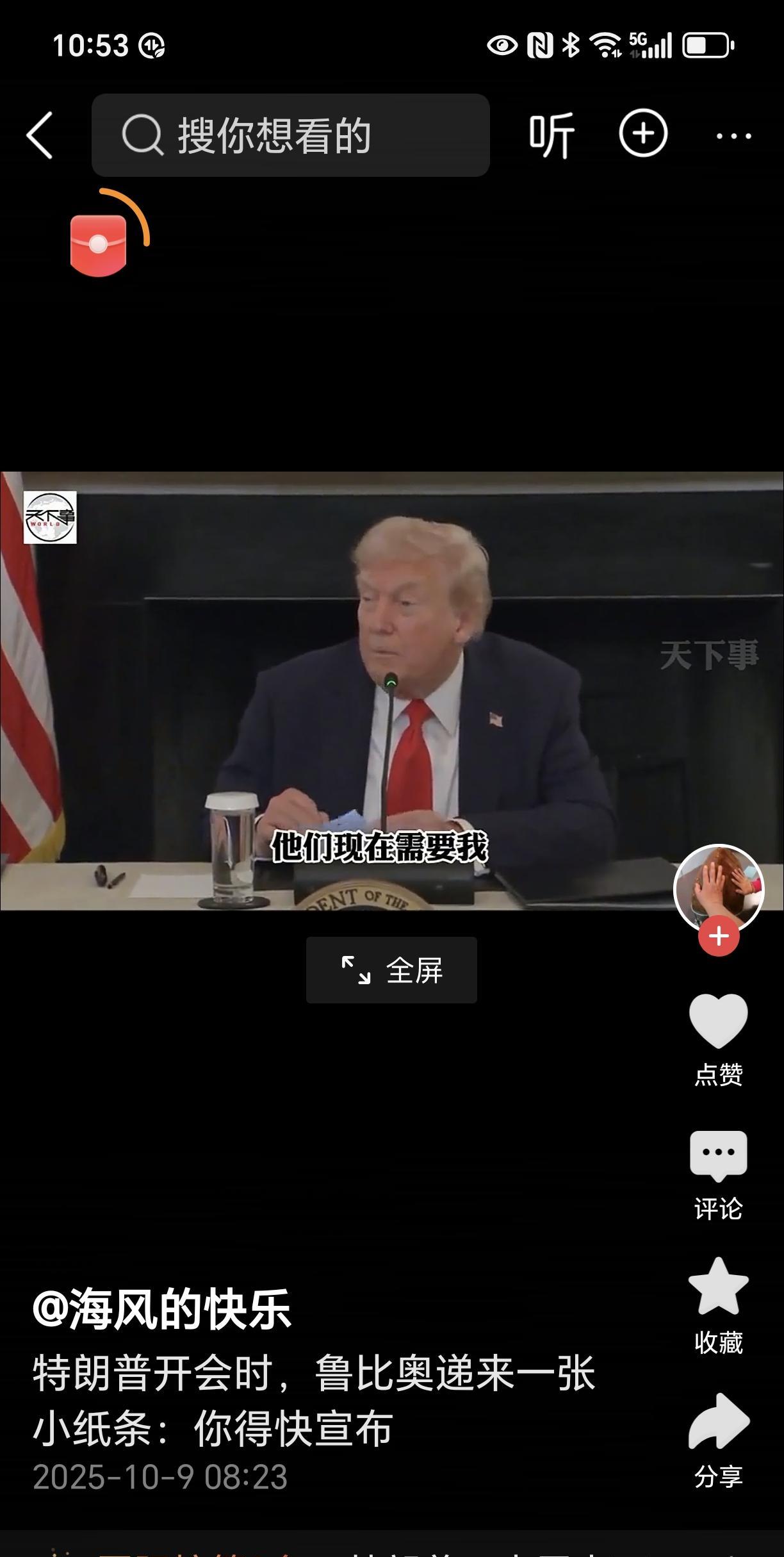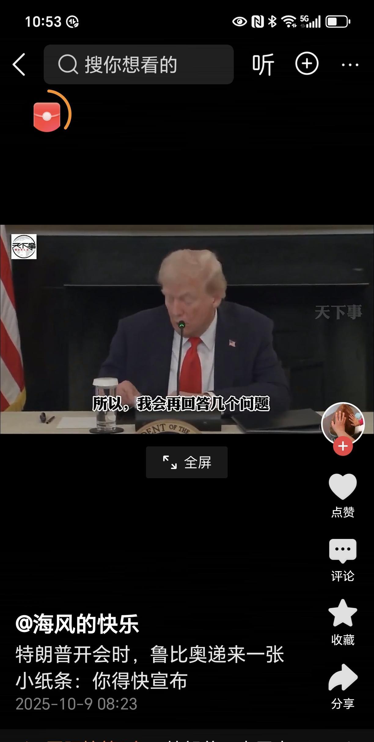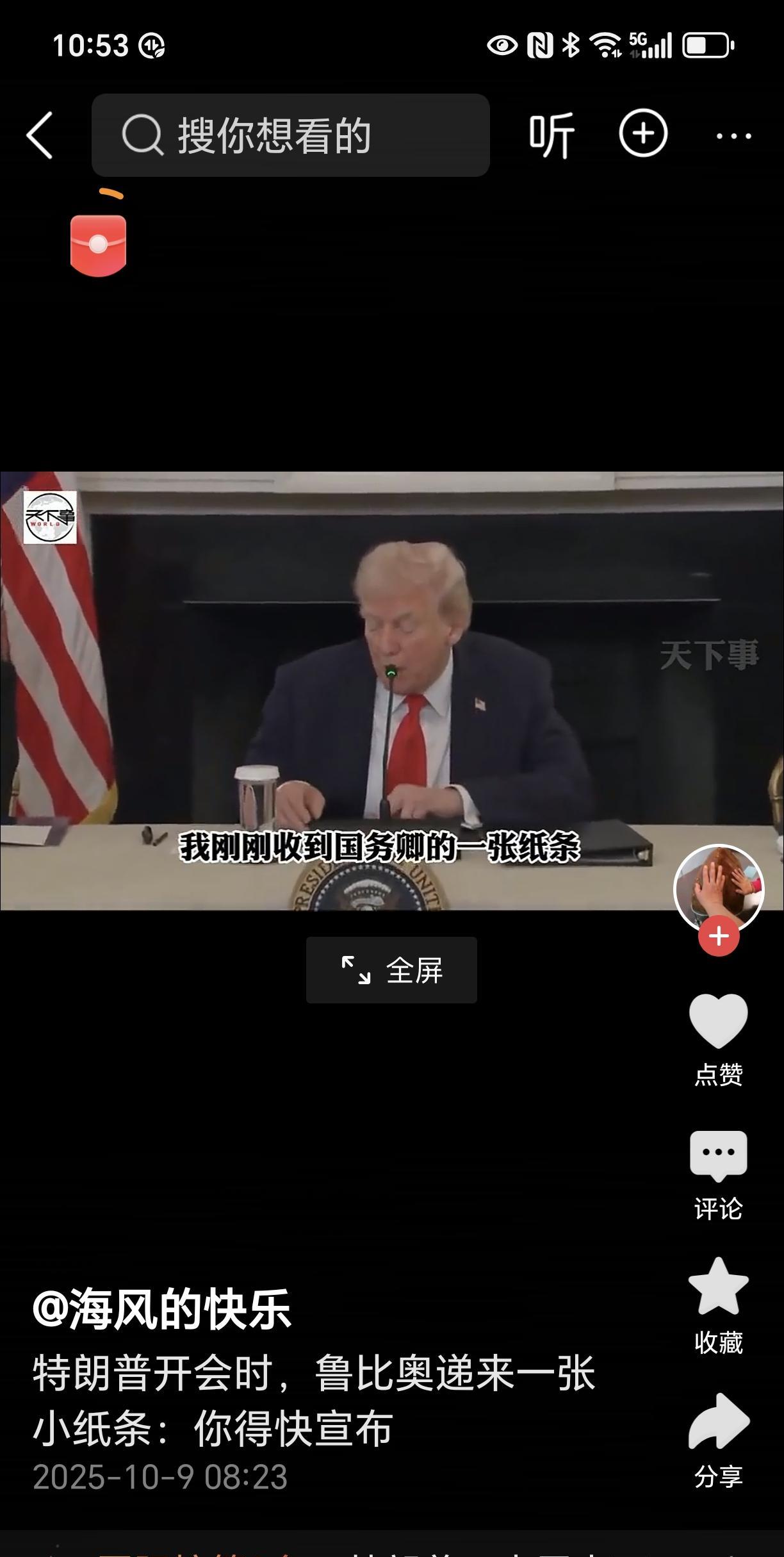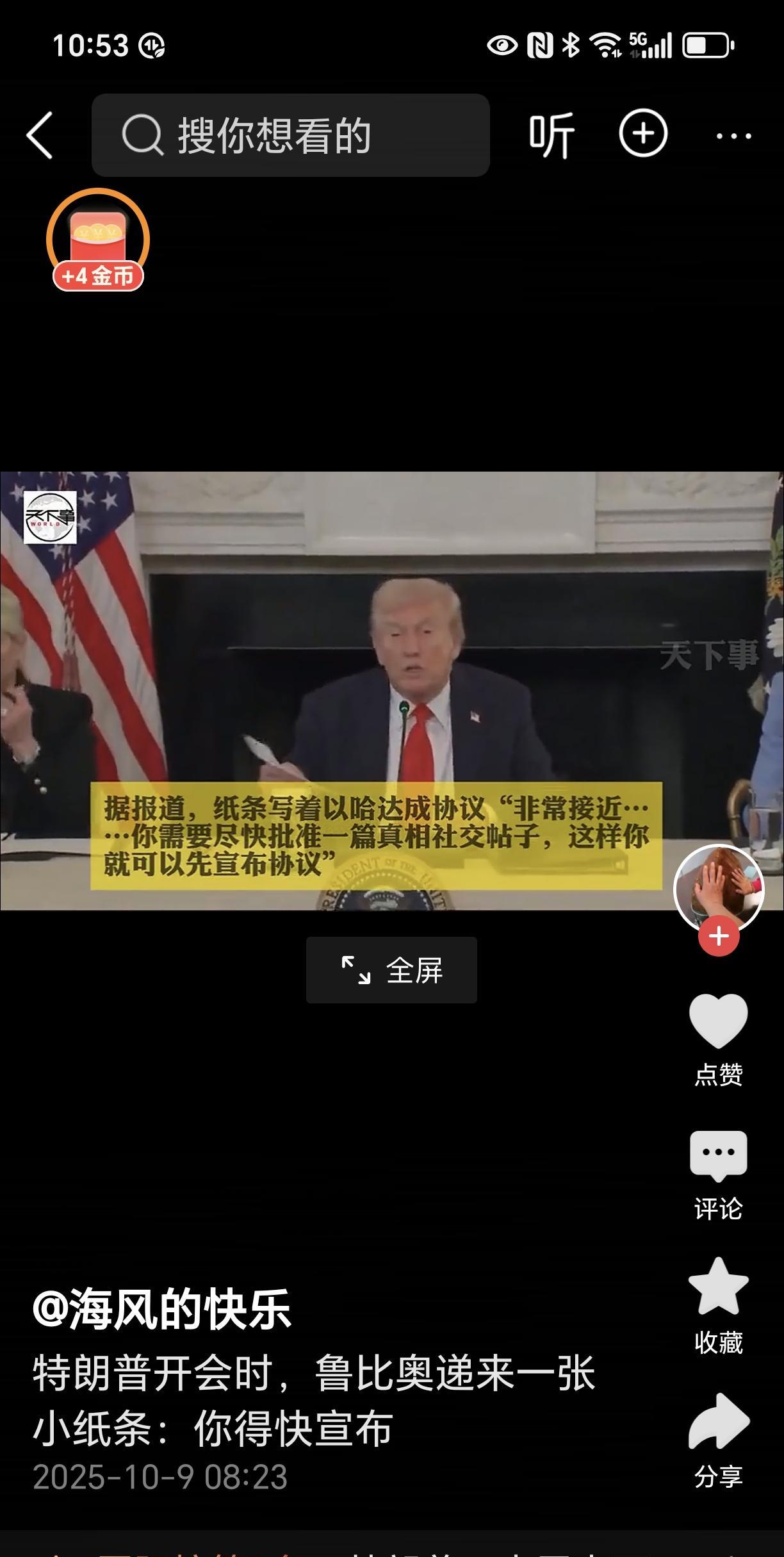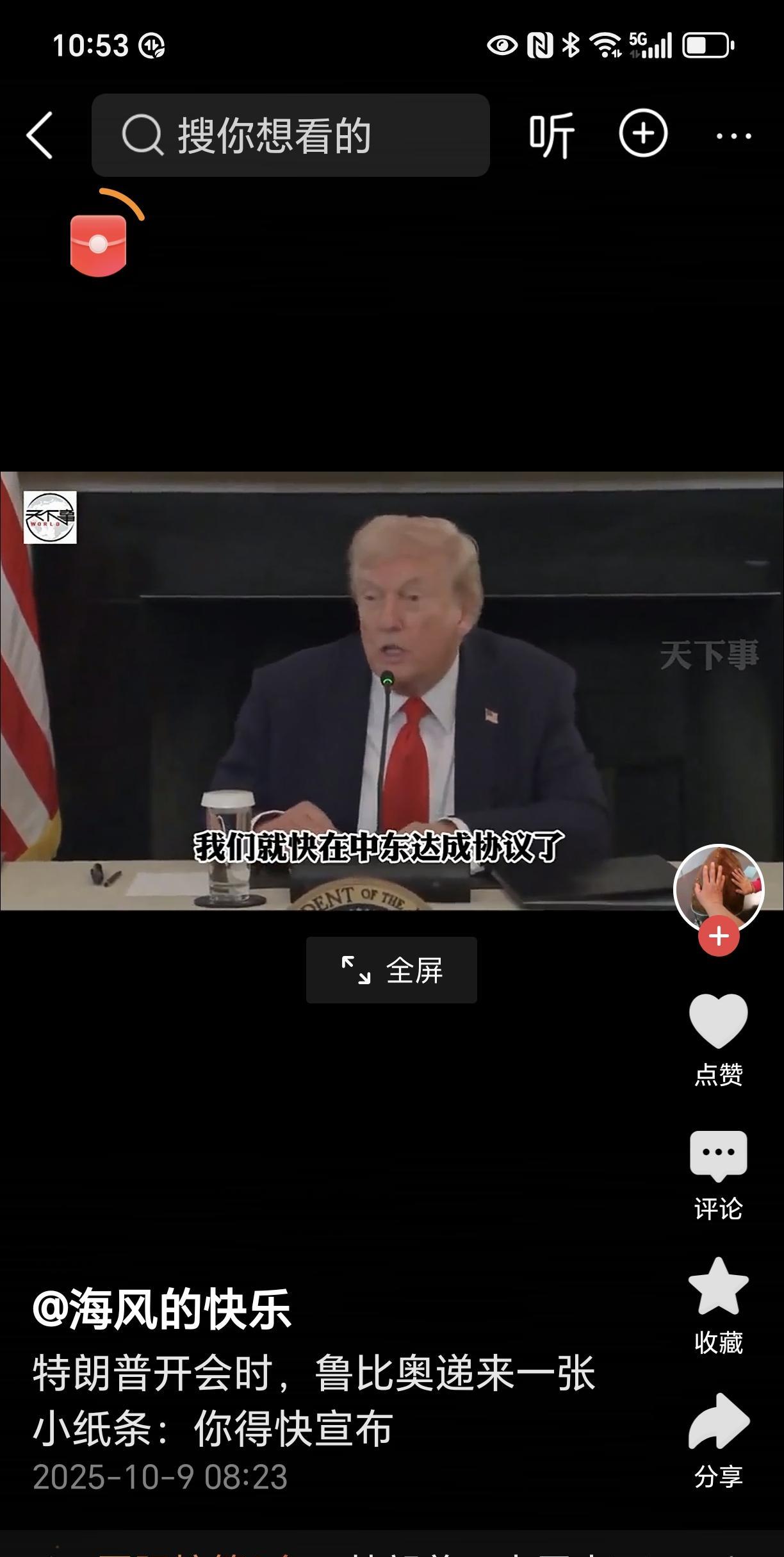 特朗普正在开会之际,卢比奥手上拿着一张纸条上前递给他,还在他耳边低语了几句。看完纸条后,特朗普显得十分欣慰。他表示,巴以会谈有了突破性进展,他愿意在此多回答几个问题。看样子,他既兴奋又受用。 这就是世界最强国家的总统