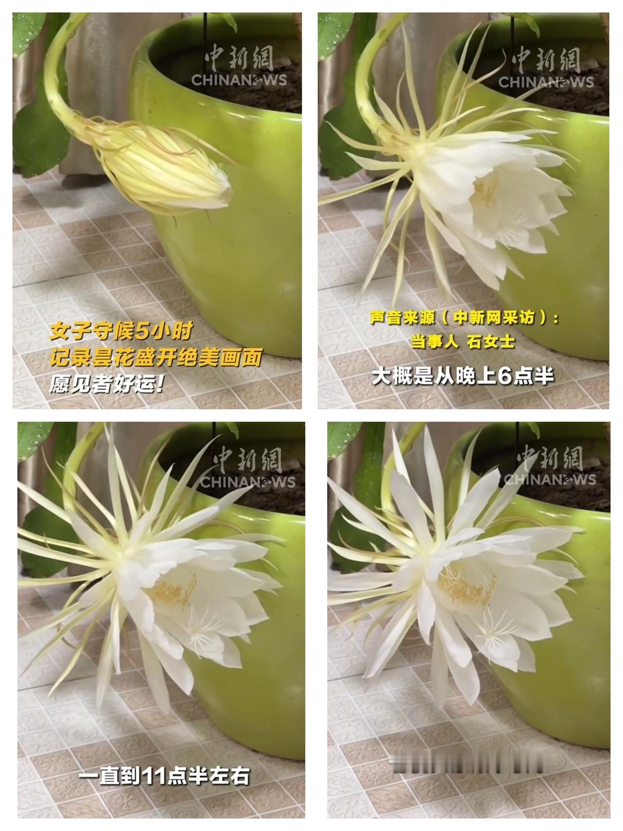 南京大姐准备关灯, 突然瞅见阳台昙花有动静—— 这可是 妈妈养了三年的花,头回