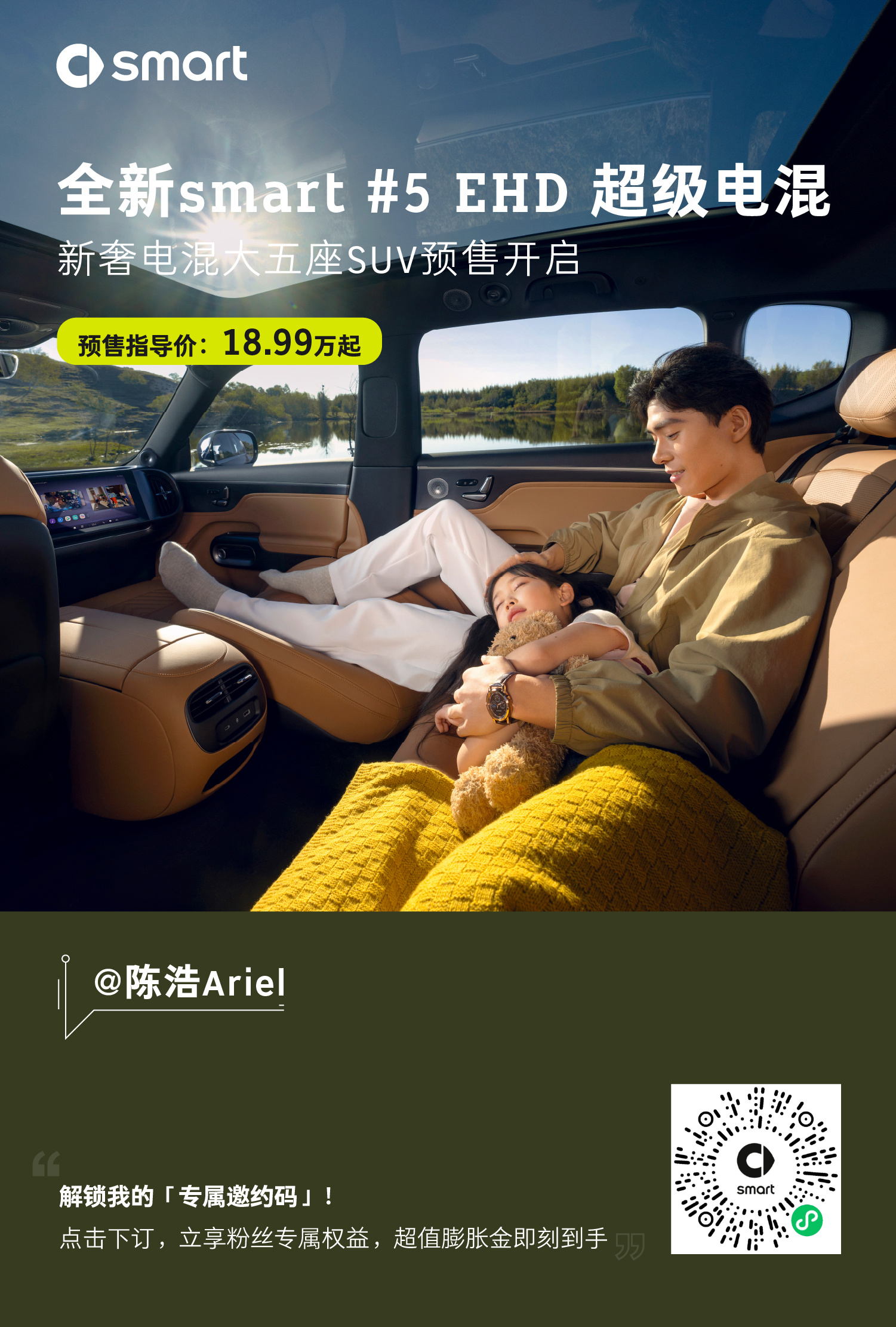 smart 5 EHD超级电混预售了18.99万起, 扫官方的二维码99块钱抵1000,扫第一张我的码,可以抵2000,如果还能再邀请一个朋友,直接抵3000。