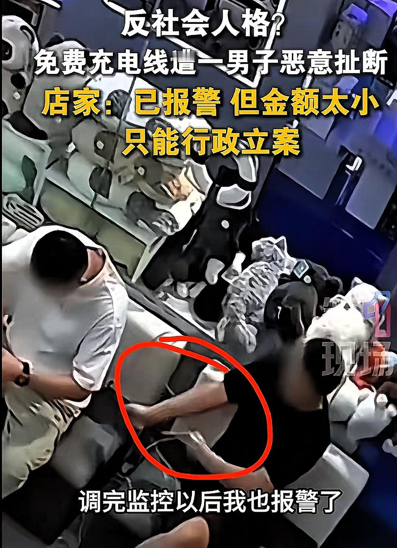 免费充电扯断数据线?这波操作真把“恶意”写脸上了! 谁能想到国庆假期里,烟台一家手机店的善意居然被糟践得这么难看!10月4号,两男两女跑去人家店里蹭免费充电,坐沙发上充完电连句谢谢都没有,临走前还特意扫了圈确认没人注意,反手就把店里两根数据线全扯断了,监控拍得明明白白,这哪是无心之举,分明是揣着坏心思来的。 店主好心开着门让路人免费充电,图的不就是份邻里间的热乎气?可有些人偏不,享受着别人的善意,转头就用小动作泄愤,活像没被教过规矩的小孩,偏要对着别人的好心踩一脚。说白了,这哪是蹭充电,是借着“免费”的由头耍恶意——你愿意帮我是你活该,我糟蹋你的东西算你倒霉,这心态才最让人膈应。 其实生活里的善意从来都是相互的,人家递出方便,咱哪怕递句谢谢都是回应。要是都像这几个人似的,以后谁还愿意敞开大门给陌生人留份方便?你们碰到过这种糟蹋别人善意的事吗?当时是怎么处理的?