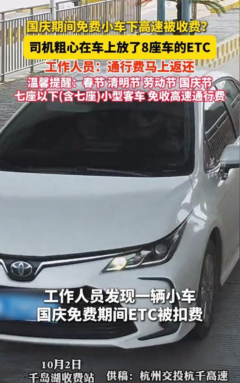 “这名收费员火了!”10月2日,浙江杭州,一司机开小轿车下高速时,被收取了63元的过路费,眼尖的收费员发现了异常,立即给司机打去电话。原来,司机把8座旧车上的ETC设备移到小车上用,这才导致的扣费。网友:这才是为老百姓服务! 国庆期间,7座及以下的小型客车上高速,是不收取过路费的,因此很多人会开车带着家人、朋友自驾游,非常的方便。在此期间如果产生了高速费,一定要及时联系工作人员,以确认是否出错。 这天早上,男子开车带着家人下高速,结果车上的ETC却被扣了63元,而男子对此毫不知情。收费员仔细看着电脑屏幕,被这突然的收费感到疑惑,因为他看到刚才过去的是一辆小轿车,理应不会产生费用才对。 收费员立即查看该ETC卡片的信息,发现绑定的是一辆8座的客车,收费员立即联系了对方,这才弄清了事情的来龙去脉。 原来,男子将以前旧车上的ETC设备,挪到了这辆新车上,这才导致产生了过路费,最终,收费员将扣款又转给了男子。 看来外出时真的一点都不能马虎,不仅要随时注意路况,还要检查车辆信息,以免发生类似的乌龙事件。 信息来源:《人性化服务!浙江高速ETC误扣费秒返还》杭州发布