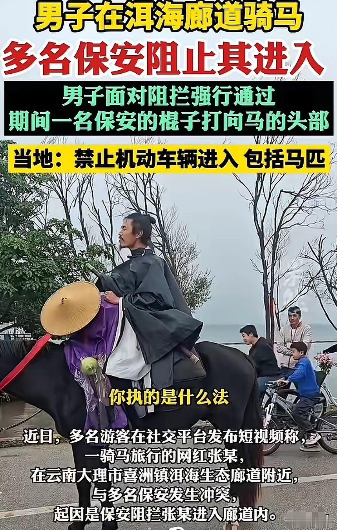 官方回应网红骑马强闯洱海廊道这网红还活在自己的江湖梦里,真当自己是骑马闯江湖、替