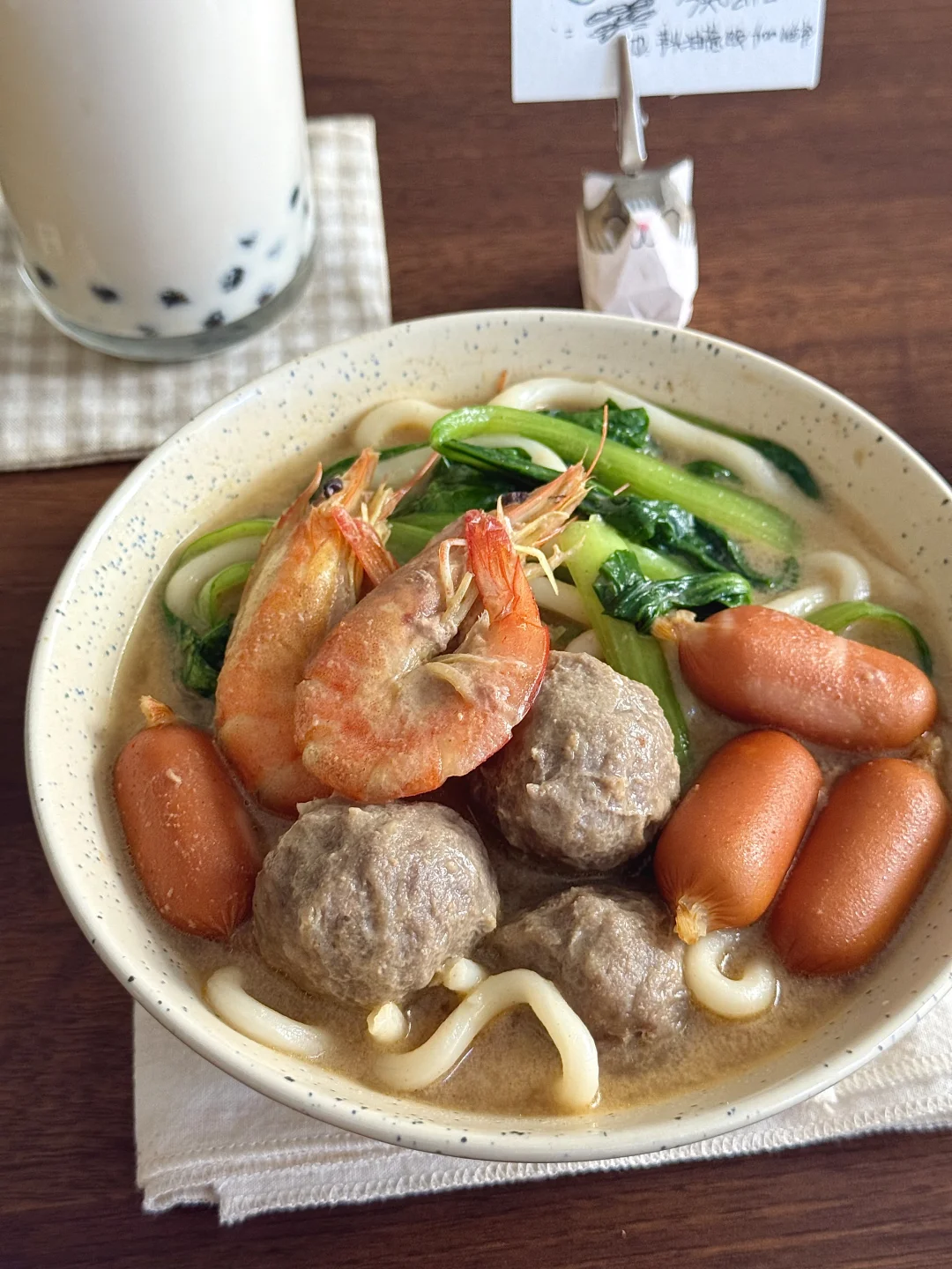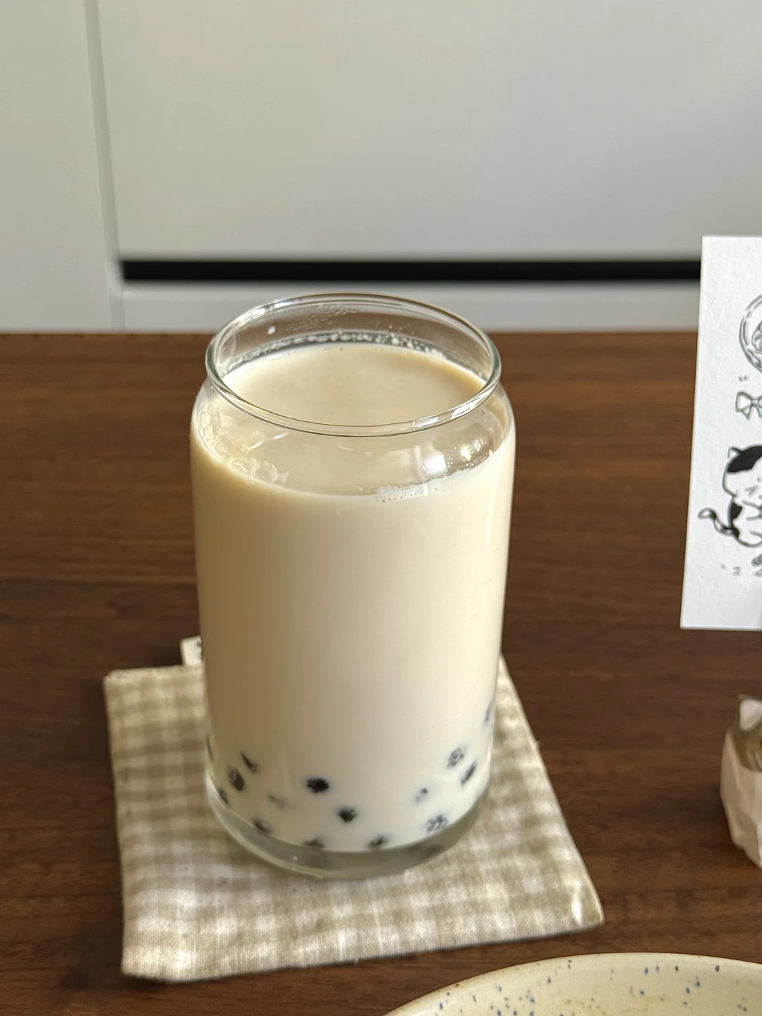 茶饮料更新快了,现在喝珍珠奶茶倒是喝出了点怀旧的感觉🍂。珍珠是免煮的珍珠,奶茶用红茶加糖炒了一下加的牛奶。