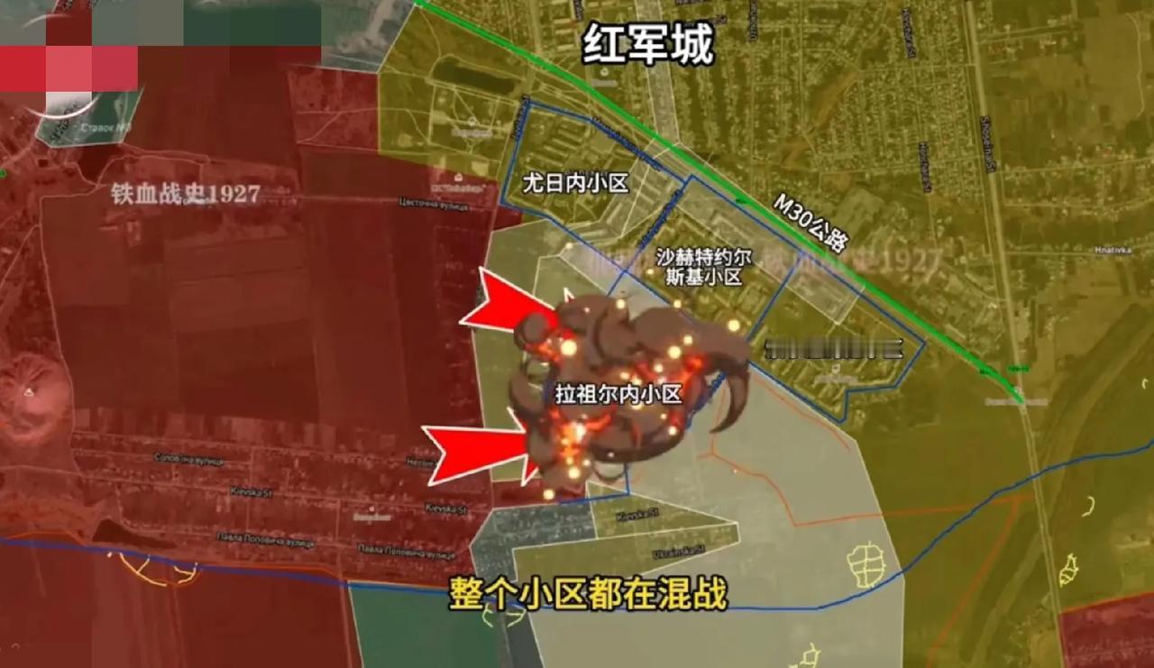 红军城城区最新战况:过去一天,俄军向红军城南部和西部发起猛攻,并取得显著进展。在