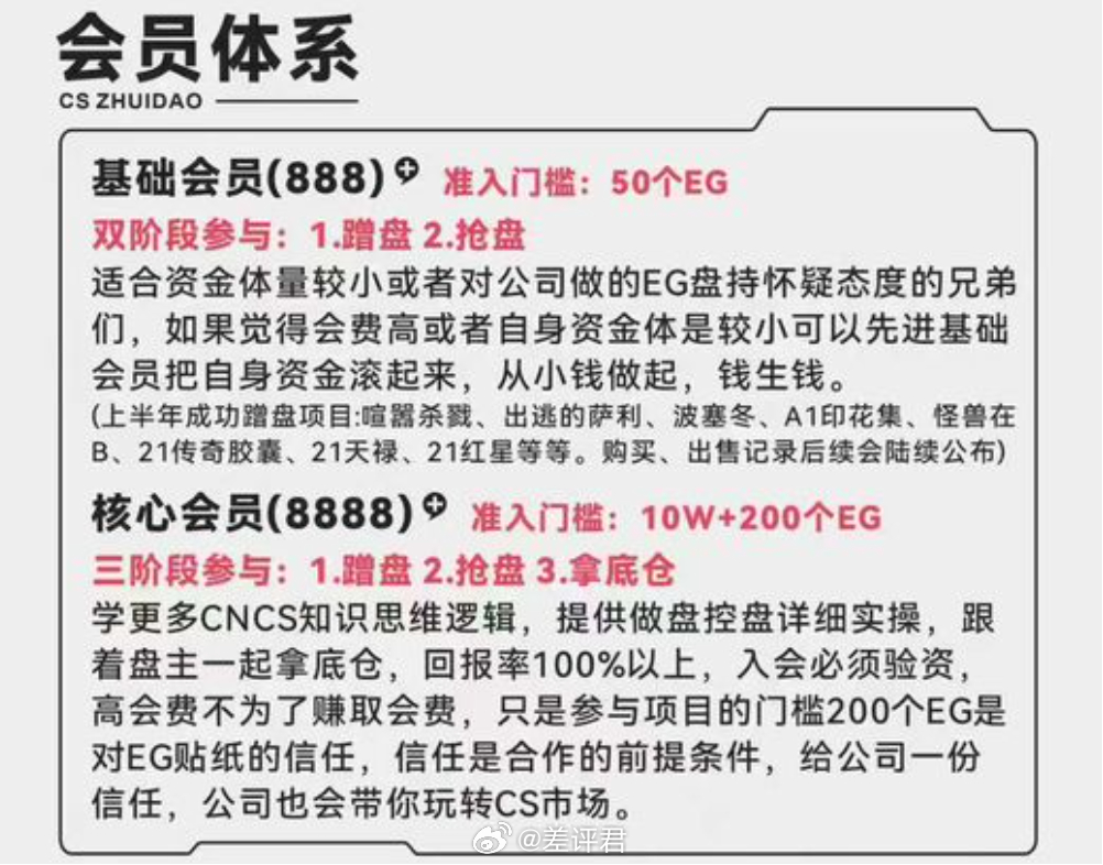 这种会员群标榜有最新内幕消息,能学到操盘的思维体系,一般会有高额的门槛费,以及对黑蛋存货量的基本要求。达不到要求怎么办?此时群主就会和你说,可以便宜一点出给你足够数量的贴纸。。。