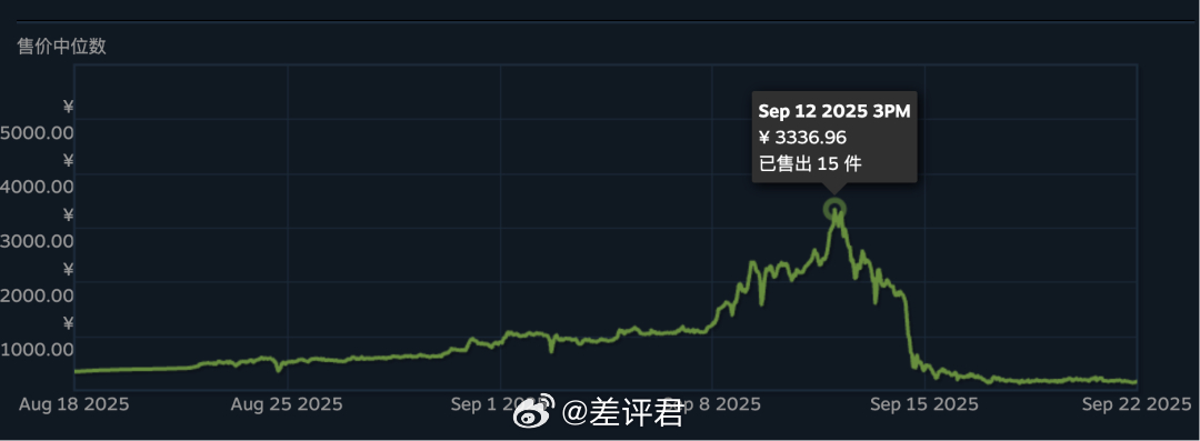 但从6月开始就不对了。它开始以前所未见的增速涨价,每天都能涨个几十上百块,于是过了两个多月后,黑蛋在Steam官方社区市场的售价,竟然突破了3300元。之后的几天时间里,它又以摧枯拉朽的姿态崩盘。
