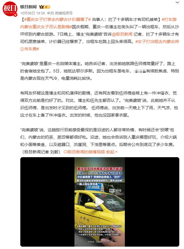 重庆女子打表去内蒙古计价器爆了重庆博主“完美婆娘”太勇了!3日凌晨想去内蒙