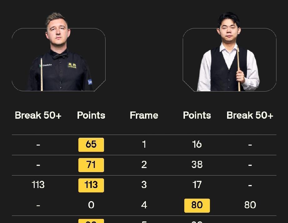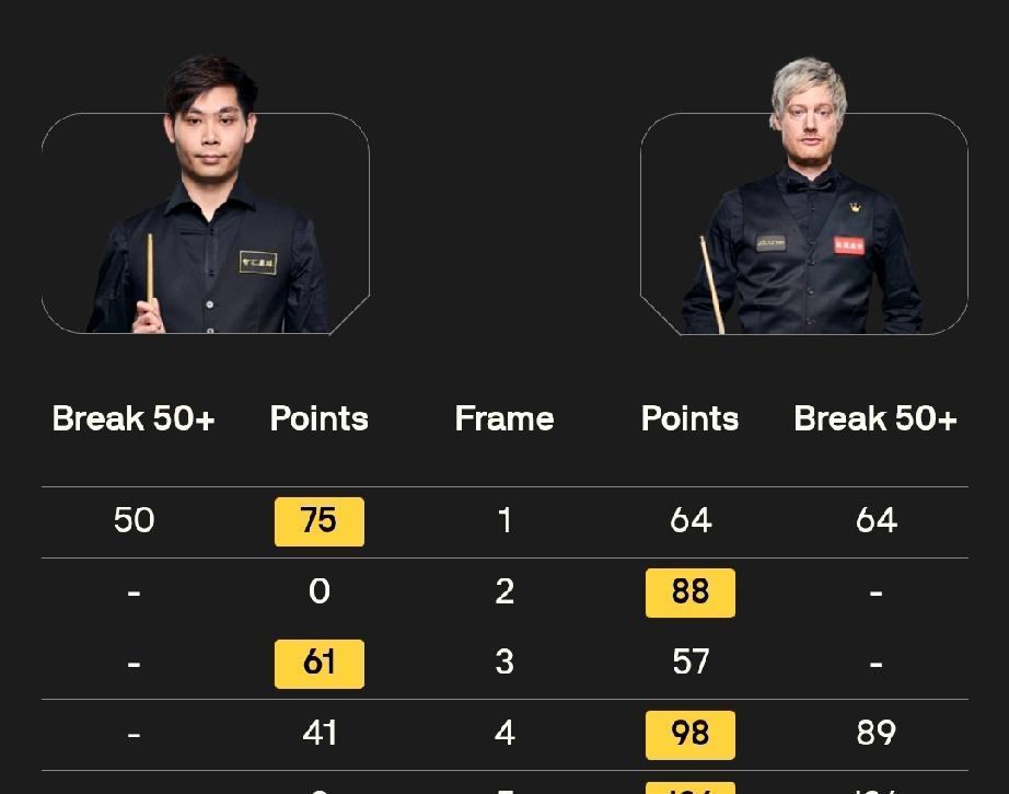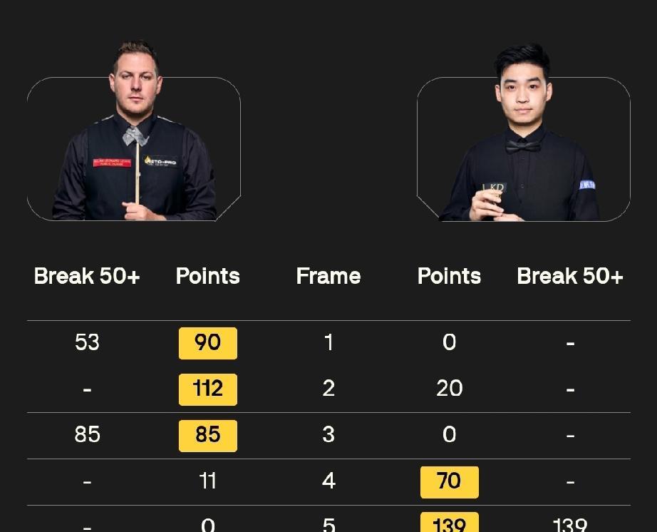 丁俊晖3-2路易·希思科特 斯佳辉2-3丹尼尔·威尔斯 袁思俊1-4