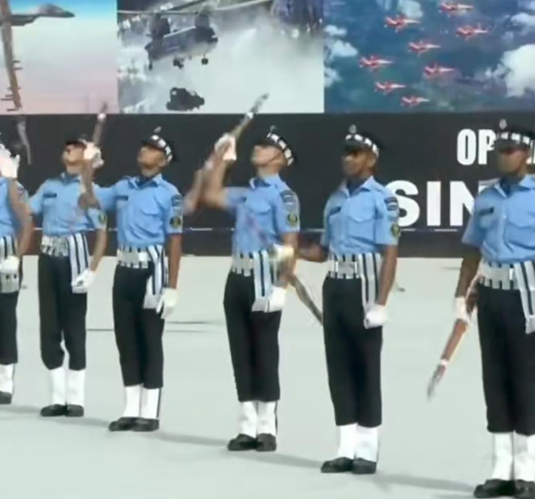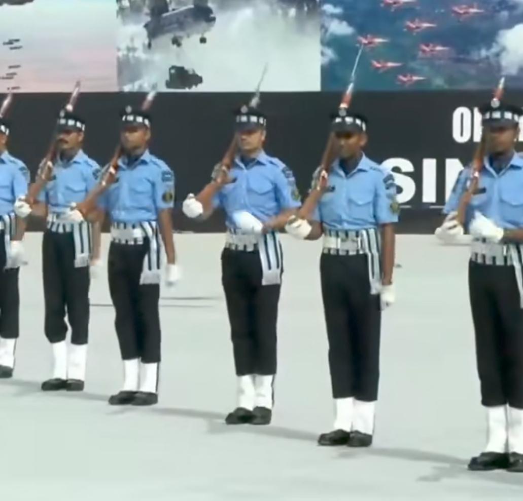 10月8日,印度举行了空军日阅兵活动,这次阅兵规模并不大,仅限于当地欣登空军基地内,士兵们表演旋转步枪,高抬腿正步走。 还行,这次没有出现意外情况,特别是枪支没有被拍碎掉落的情况,而且枪支比较干净,没有出现胶布缠绕加固的情况。 这说明印度空军配枪的质量,显然要比他们的陆军高很多。 印度空军参谋长阿马尔·普里特·辛格乘车检阅了部队。