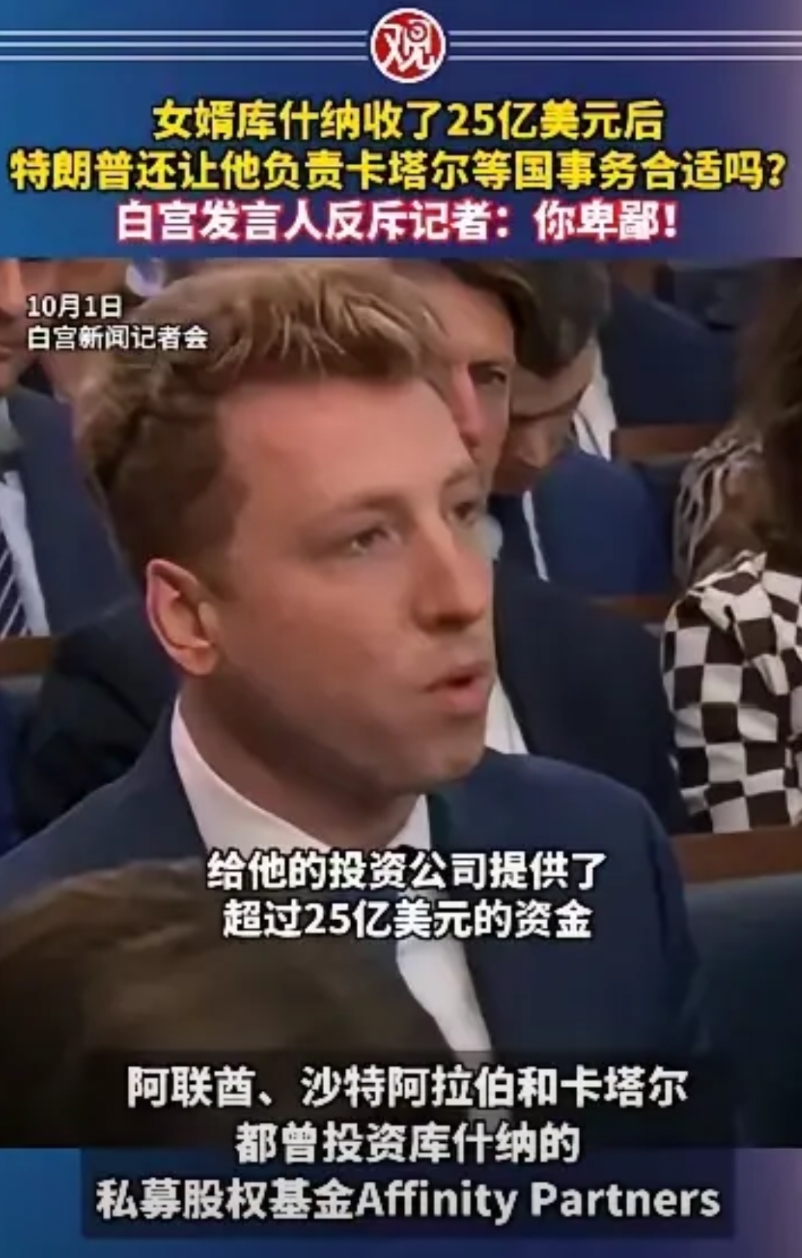 记者质疑,特女婿不适合担任中东特使……结果反被白宫发言人指责~无耻