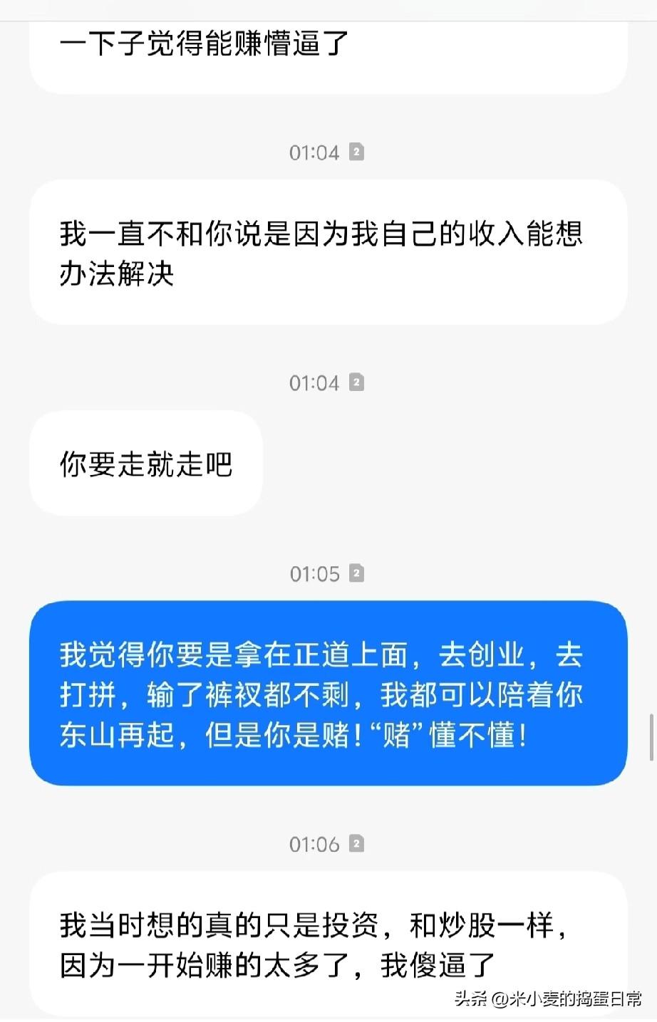 男友瞒我狂输70万,卖房戒赌的承诺能信吗? 男友哭穷让我转3万渡难关,转头就拿这钱在赌局里几天造没70万!被我抓包后,他竟说卖房戒赌就能翻篇,还反咬我“树倒猢狲散”。 咱就说,黄赌毒沾一样都该跑!可偏偏有人觉得“浪子回头金不换”。但这赌瘾就像毒瘤,今天输70万,明天就能卖肾填坑! 可话又说回来,真要分手,是我现实还是他活该?你要是遇上这事儿,会为了所谓感情陪他卖房还债吗?来评论区说说,这种“赌徒男友”到底值不值得一丝留恋?