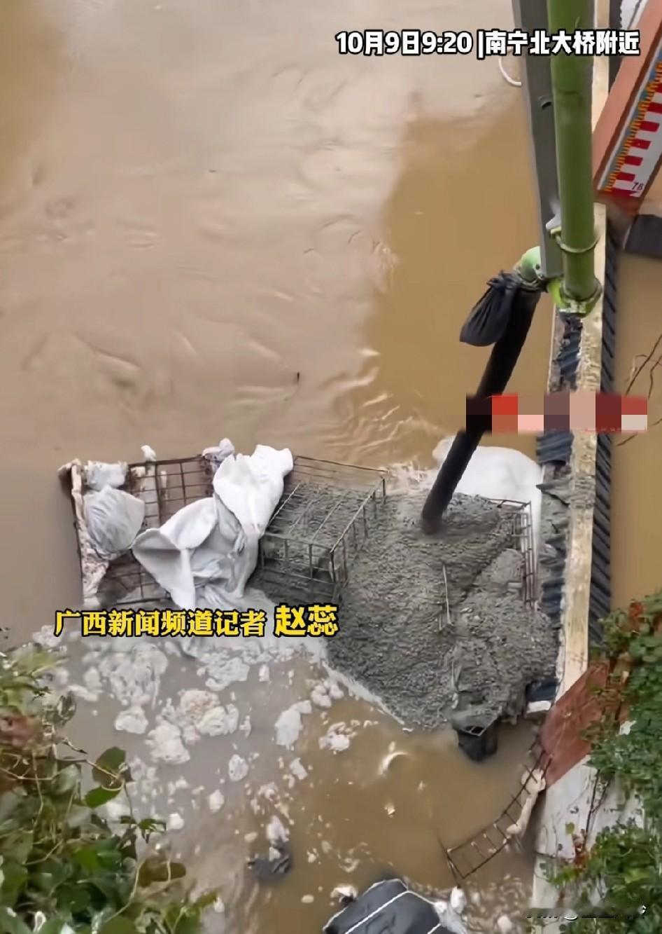 丢铁笼棉被,实时浇筑混凝土,阻挡洪水涌入市区,现场方案不断在改良 感觉还是沙袋最有效果,据说已经丢了十几个铁笼,水泥多少不记,这样下去能固吗? 洪峰超过76米高,这是邕江啊,是条大河,混泥土只能在静态的水里会凝固,在动态的水里不会凝固,这无疑和洞庭湖用沙填一样。估计实在也是没有好办法