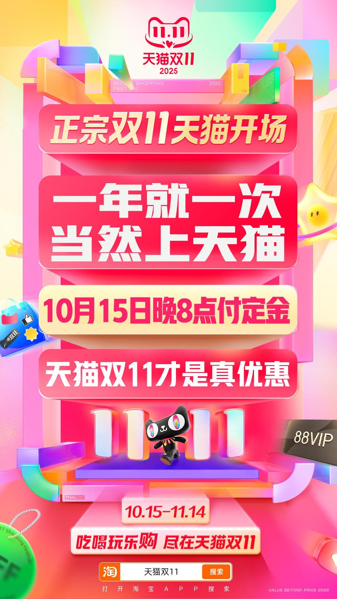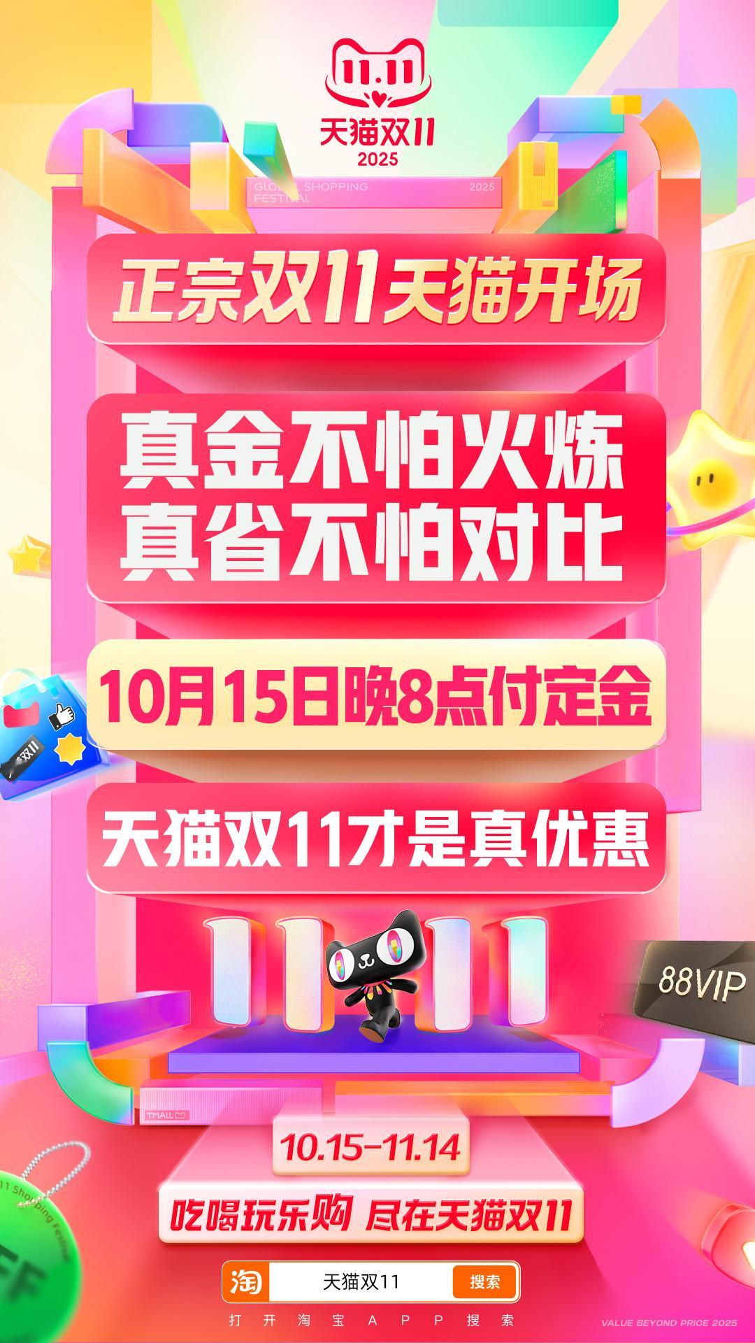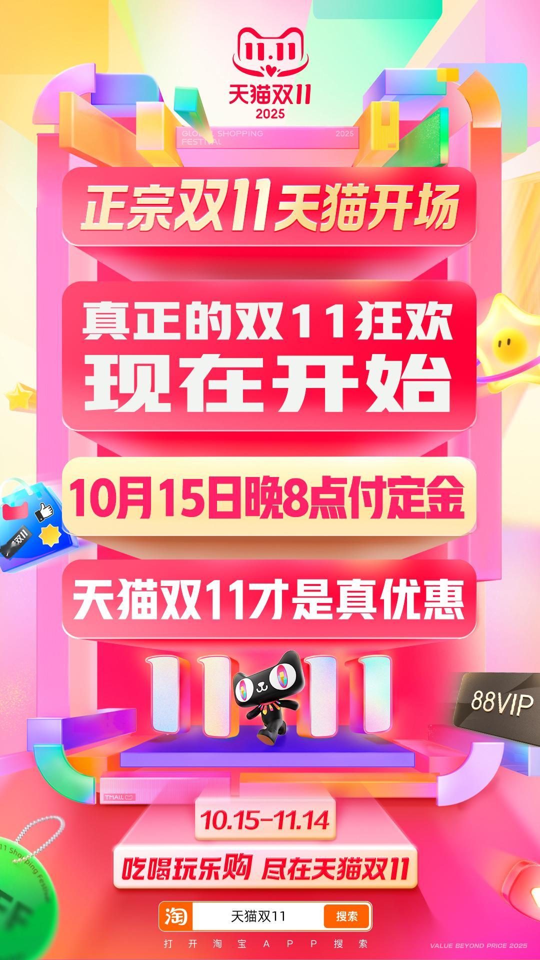 正宗双11天猫15日晚8开启 今天!我们欢聚在这里!是欢庆在直播间每天赚一两百的好日子的到来!欢庆0水分真低价,怎么买都省的天猫双11即将到来!10月15日晚8点天猫双11预售正式开启,狂撒30亿直播定金红包,上淘宝搜索【双11直播红包】,锁定10大主播直播间,0元付定限时抢,真优惠还得看天猫双11!天猫双11直播狂撒30亿红包 天猫双11才是真优惠