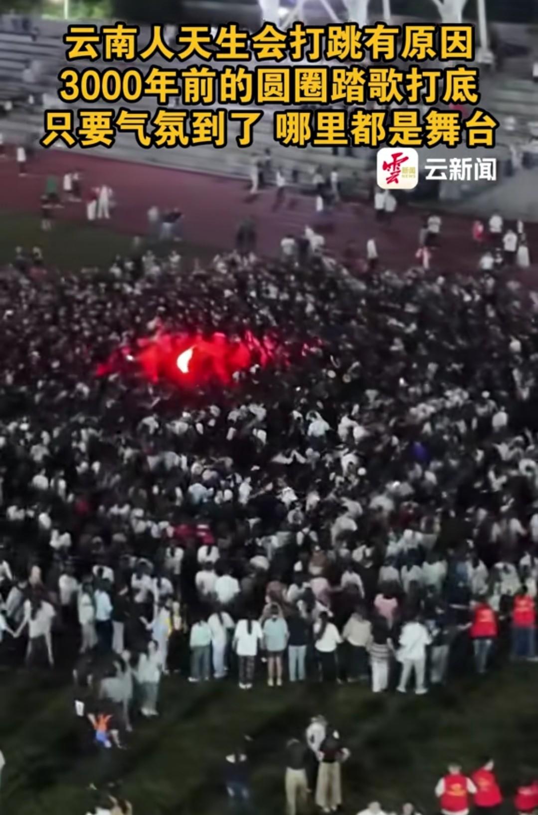 都说云南人天生爱打跳,喜欢围成圈跳舞,原来是有原因的,老祖宗三千面前也这样跳,气