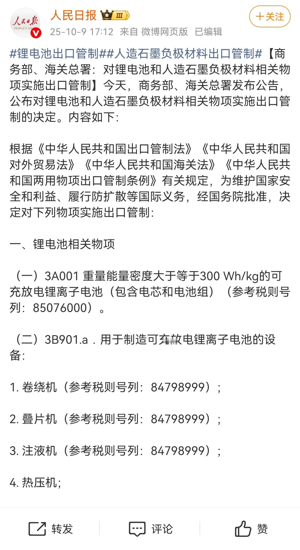 🔻战!🔻喜欢贸易战是吧,喜欢虚空造牌是吧,奉陪到底。锂电池出口管制