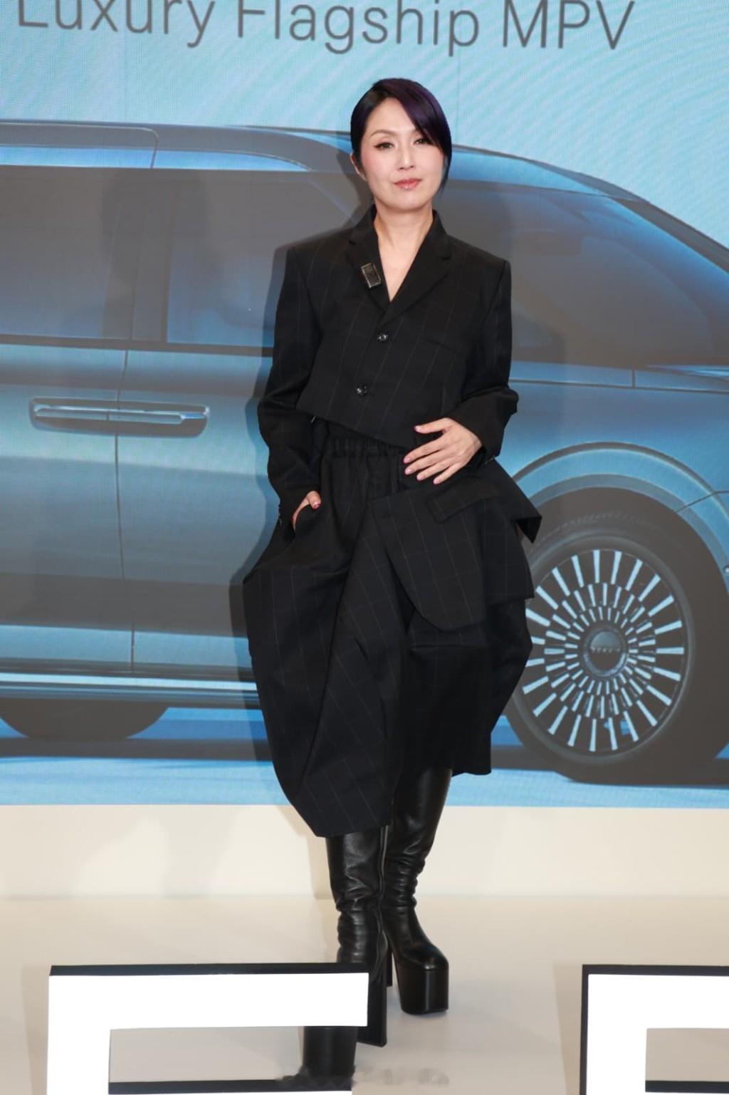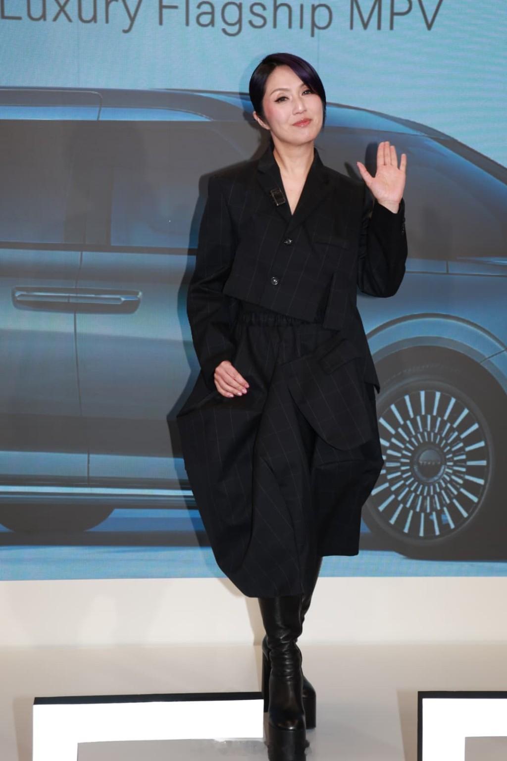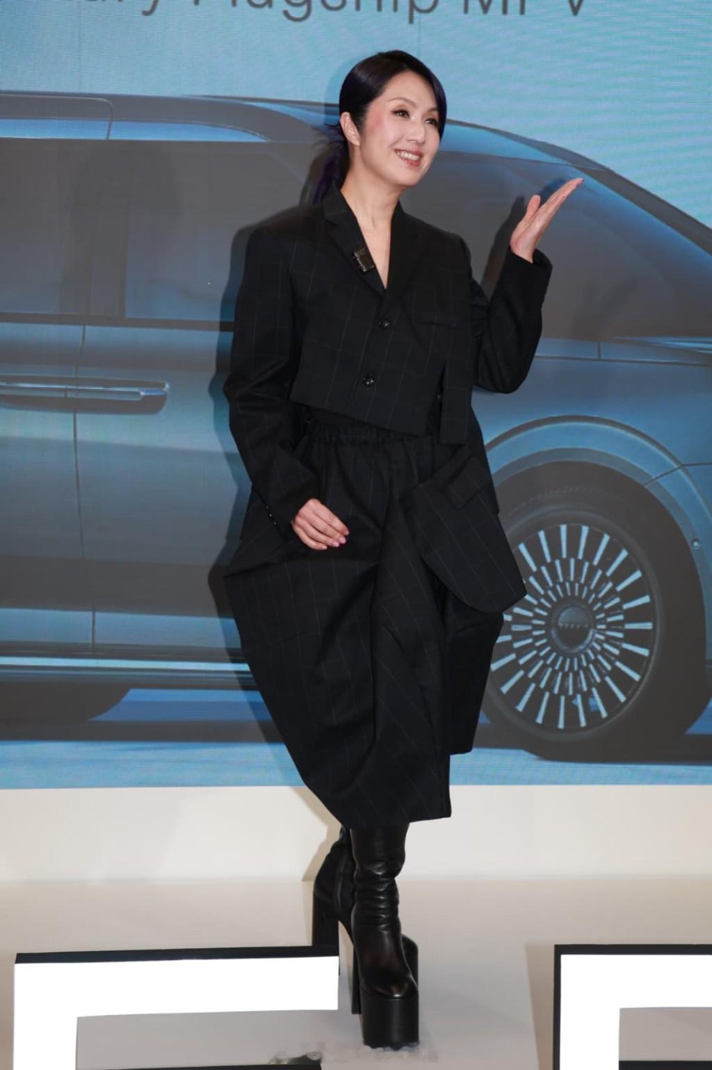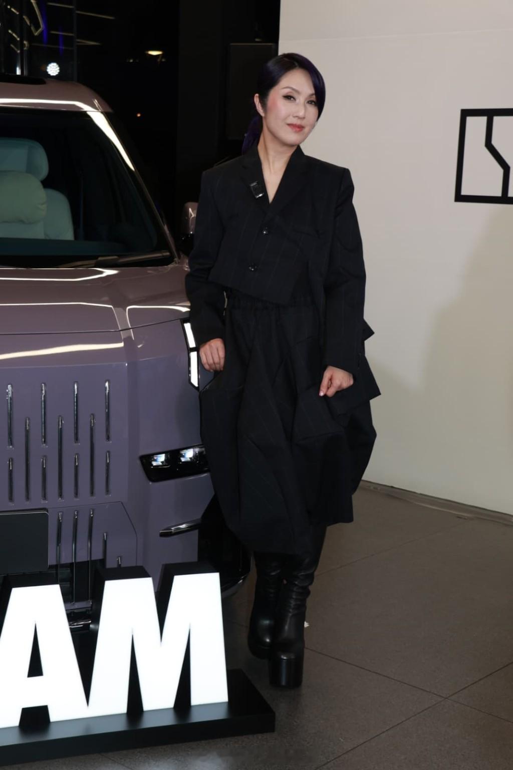 杨千嬅出席于太古城举行的豪华纯电动车活动,为其专属的紫色座驾进行掀幕和交车仪式。千嬅近日忙于筹备11月底至12月初在红馆举行的演唱会,不过早前她在社交网透露入院做手术,手术后首次现身香港活动。