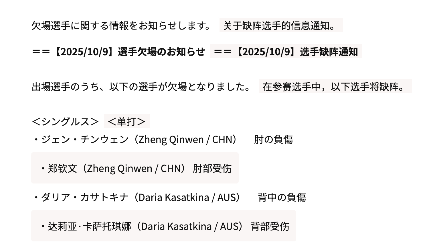 WTA东京500赛官方网站显示,卫冕冠军郑钦文已经退赛,这样她本赛季常规的巡回赛事已经告一段落🙏