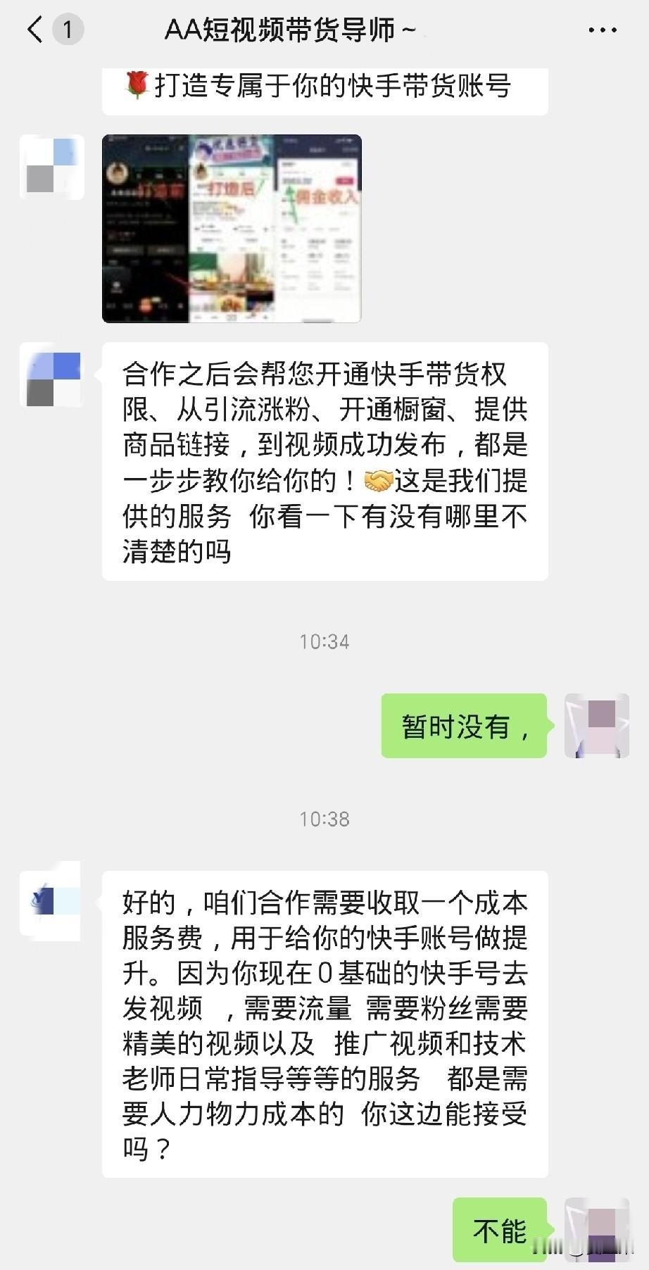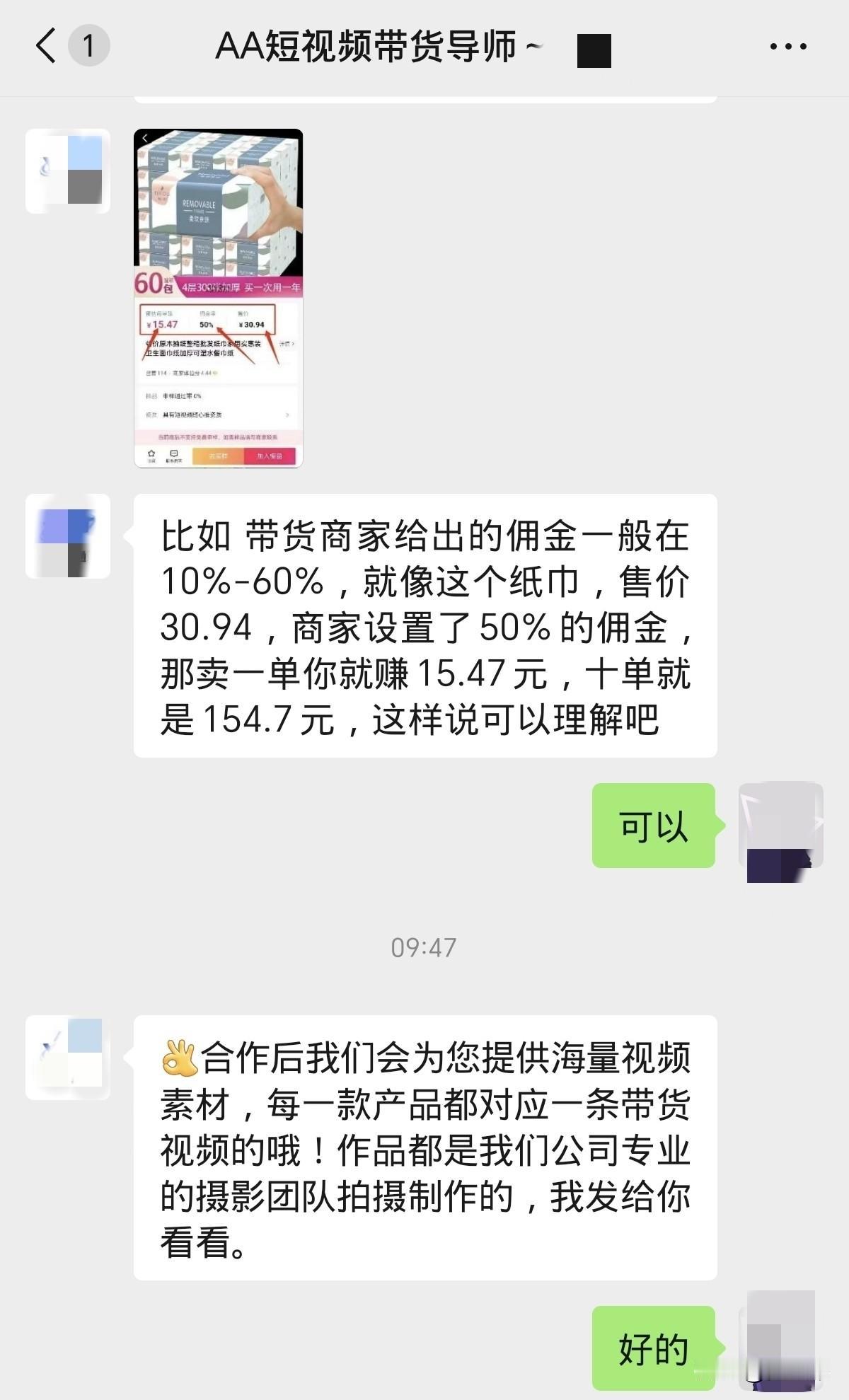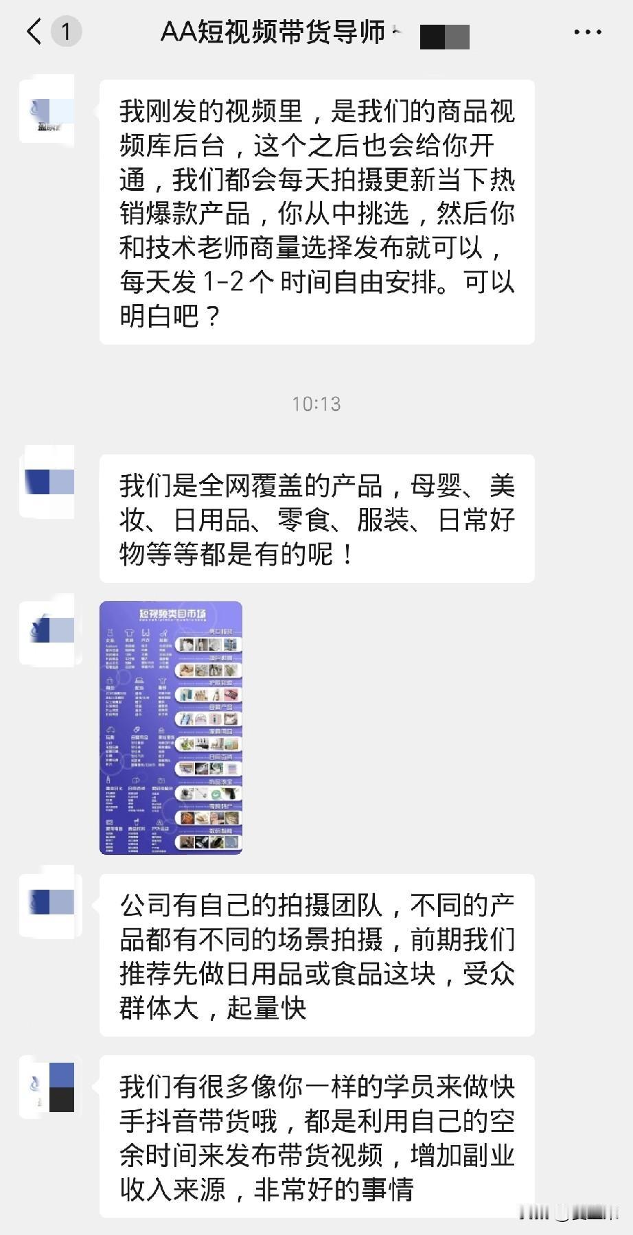 不要相信什么兼职app了,都是骗人的。 这两天,我翻看头条,发现有很多写兼职的,什么短视频兼职,文字兼职等等, 于是我就下载了里面介绍的一个兼职app,打开一看,对新人都是每天300、500的兼职工作推送。 经过点击一个短视频带货的兼职进去,企业微信对话,又关注服务号又扫描二维码得复杂程序, 加了一个工作人员,进行了颇为愉快却暗藏玄机的对话。 先是礼貌问候确认你是否要带货转佣金, 然后介绍怎么带货赚佣金, 接着告诉你无论货源还是视频都有他们专业团队代理,手把手教你,你只需要转发即可, 再接着就是发给你别人做这行赚了多少, 最后再说,你需要先缴纳成本服务费。 我也不知道交多少,因为我拒绝了, 然后就再也不理我了。 有句话叫骗你没商量,但是人家这叫骗你有商有量的。 我发现有很多网友发这些东西。 比如有网友发的兼职app里一个工作,只要你按要求一次性完成18个,就结算一次。 然后你尝试了一下,发现这些好多都是需要手机注册的,通过这些兼职,你的手机信息可以被卖出去18次。好多坚持不了做完,也就没有工资,但是手机信息却已经被他们卖了,他们仍然赚。 说白了,对你这头来说,是给你介绍兼职工作的,但是对他们来说,其实是他们来通过吸引人兼职赚人头费的。 真是买的不如卖的精,一定要睁大慧眼看清楚啊。