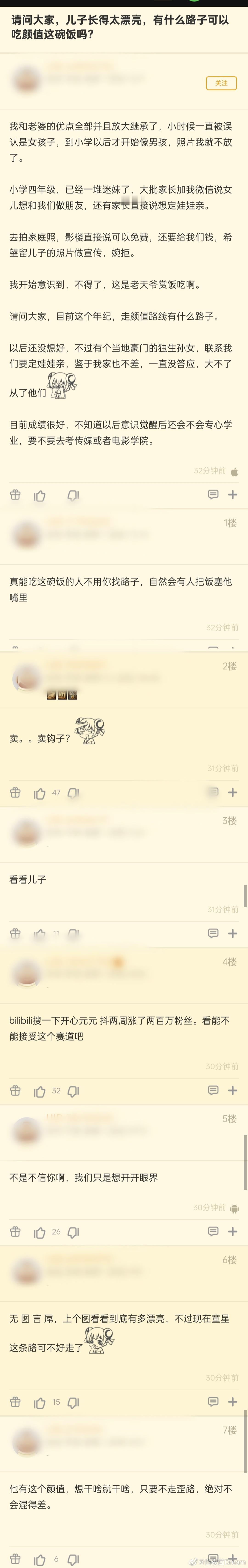 天下 之人 2 2025-10-10 03:28 下面提议的b站拍视频确实可以;如果真的像他说的漂亮的不行的话,那涨粉应该很快。然后粉丝多了就可以接广告带货了。这样算是对孩子影响最小的了。就是家长累,需要抽时间剪视频。 另外很重要的是,大多数小时候很漂亮的,长大了就不行了。都说女大十八变,男的也一样。尤其是高中时期青春期完全过去了,相貌才能定型。不然一些小时候好看的,你会发现长大了很一般