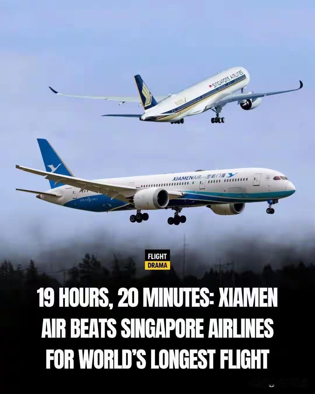 厦航此次表现堪称惊艳!其从纽约肯尼迪国际机场飞往福州的航班,飞行时长19小时20分钟,直接打破新加坡航空19小时航程纪录,创造了新的“世界最长航班”。 如此长的飞行时间,对乘客和空姐都是考验。长时间工作,身体与精神都需高度集中。由此可见,距离和地缘政治因素的确能改变航空纪录。厦航此次突破在航空史上留下浓墨重彩的一笔,期待它未来带来更多惊喜。