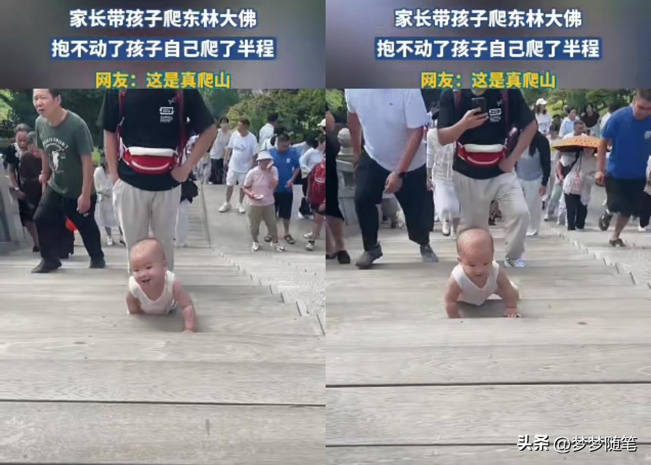笑不活了!东林大佛949级台阶上,上演了最萌“真爬山”现场! 爸爸抱娃爬得直喘气,放下休息的功夫,小家伙直接手脚并用“开挂”,吭哧吭哧爬了半程,路人都忍不住点赞加油。 网友这话没说错:爸爸带娃从不让人失望!比起雇人背娃爬泰山的“省力操作”,这种“佛系放养”反而藏着惊喜。 妈妈们总担心磕着碰着,爸爸一句“放下来歇歇”,倒给了孩子自己探索的机会。 其实带娃哪用那么紧绷?有时候少点“保护欲”,反而能看见他们超棒的小力量。 你家队友带娃时,出过哪些又好气又好笑的“神操作”?快来分享!