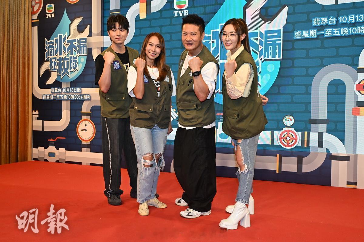 钱嘉乐、李旻芳、林秀怡、曾锦燊主持TVB新资讯专题节目《滴水不漏拯救队》今日举行记者会,钱嘉乐表示曾有家居渗漏问题,换喉解决问题,但早前超强台风桦加沙袭港,厕所出现水浸,有可能因太大雨在抽气扇渗入。