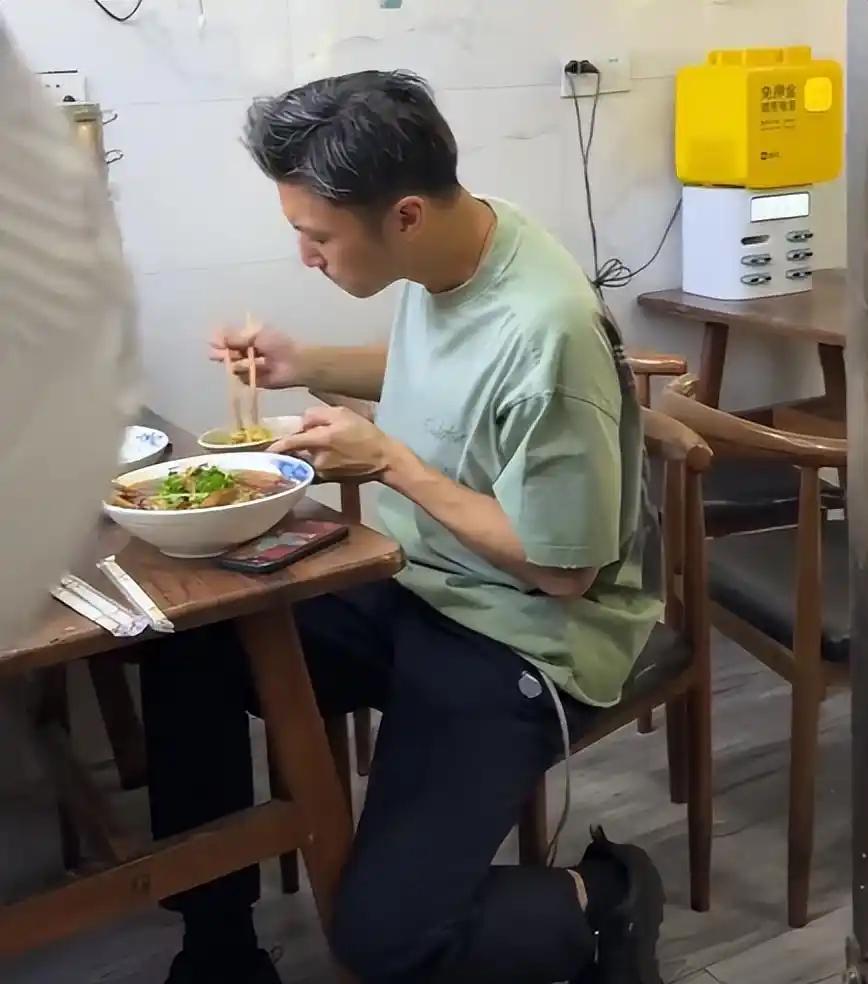 谢霆锋街头嗦面还打包,明星接地气才最圈粉 谢霆锋重庆街头小馆吃小面,打包带走还