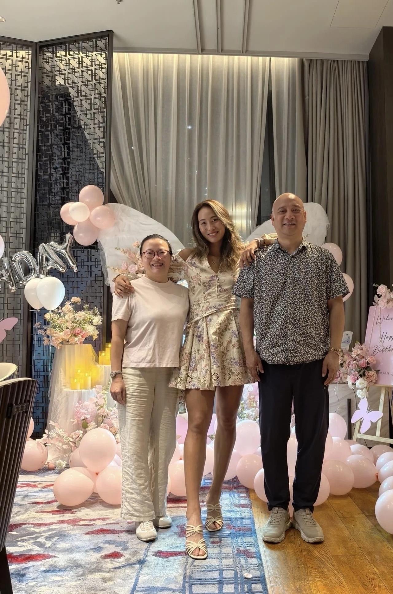 10月8日,郑钦文迎来了她的23岁生日,她和家人一起庆生,与爸爸妈妈合影的温馨画