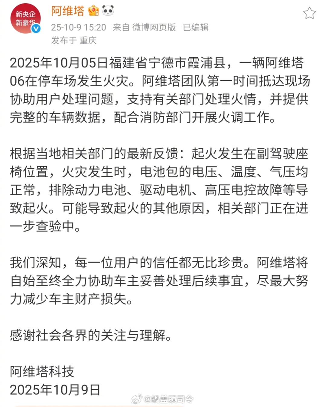 #阿维塔回应一车辆起火致7车烧毁#起火发生在副驾驶位置,具体原因还在查。