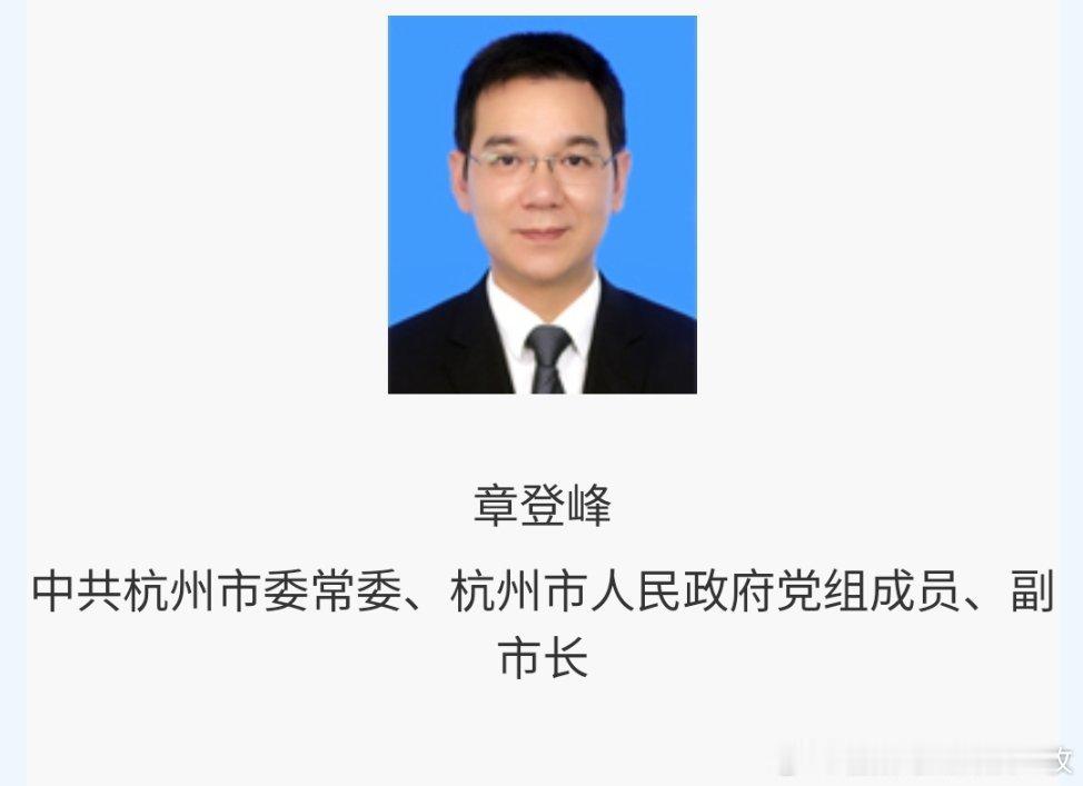 近日,浙江省杭州市政府官网“政府领导”栏目更新显示,章登峰现已担任杭州市委常委、