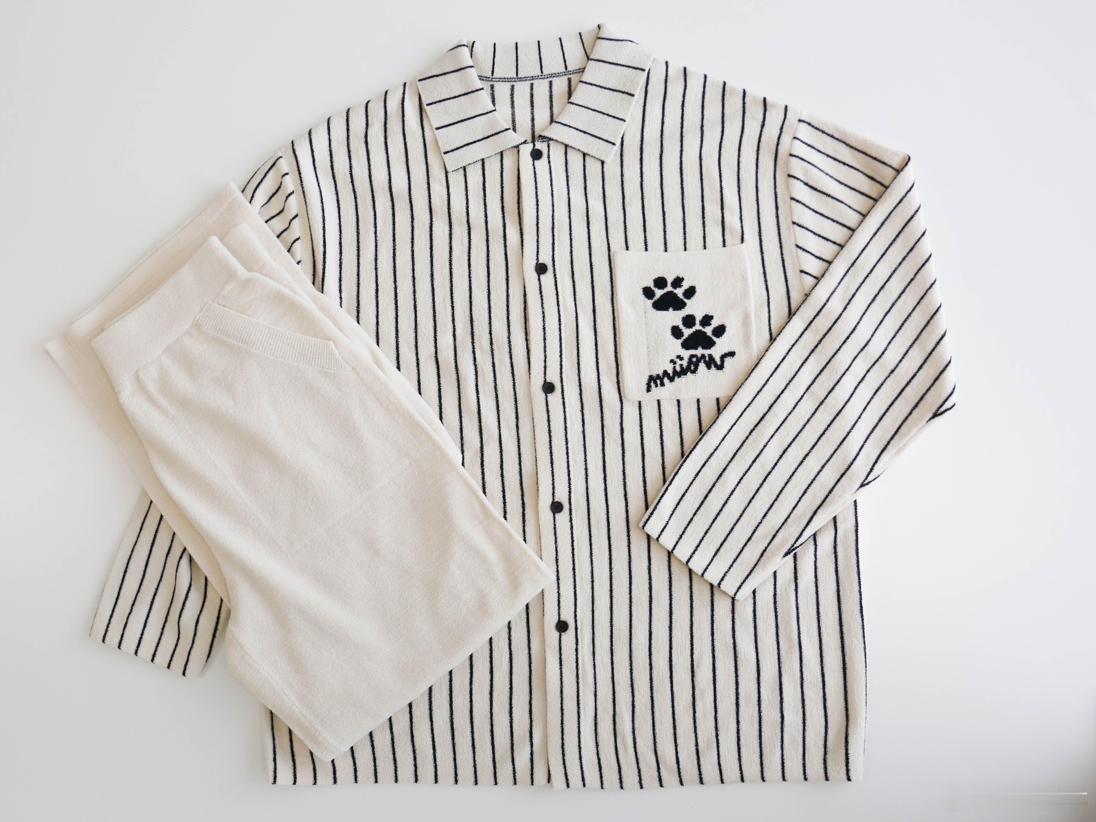 经典条纹设计搭配趣味猫爪图案,给居家生活增添氧气感,大口袋设计也很实用。猫人暖绒绒睫毛纱家居服,一件好穿好用的家居服就应该是这样[笑而不语]