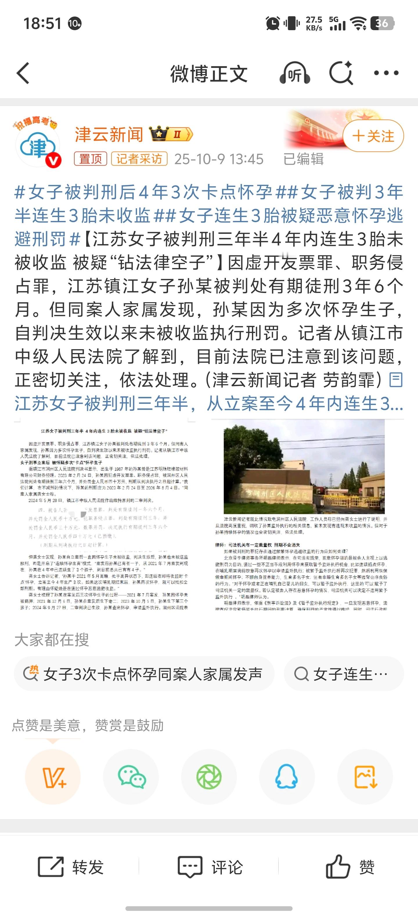 女子被判刑后4年3次卡点怀孕。。。属实是离谱他妈给离谱开门,离谱到家了