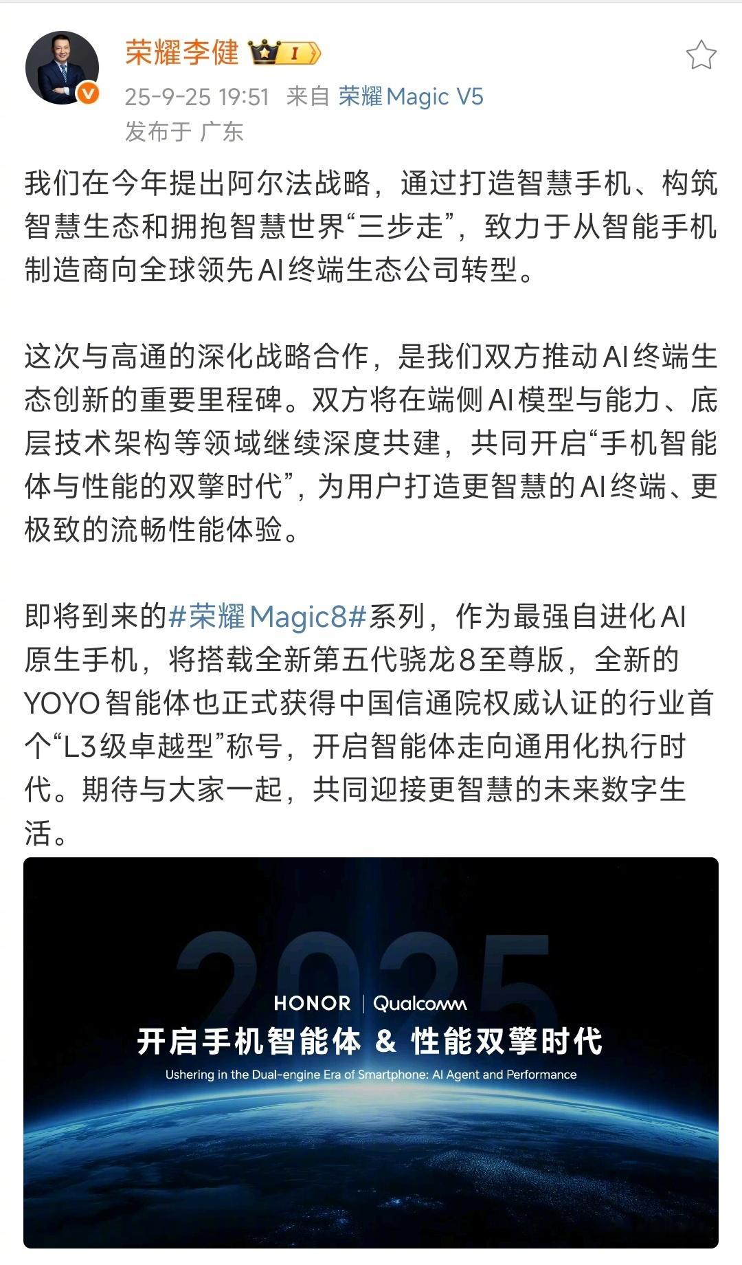 荣耀Magic8定档10月15日荣耀Magic8作为荣耀Magic家族的最新成员