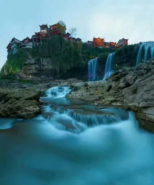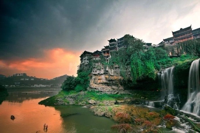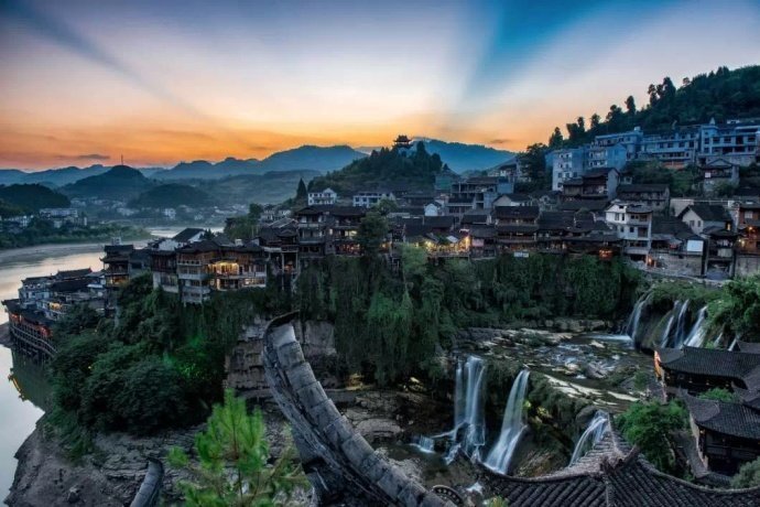 湖南·芙蓉镇,悬挂于瀑布上的千年神奇古镇,黄昏的时候异常迷人。