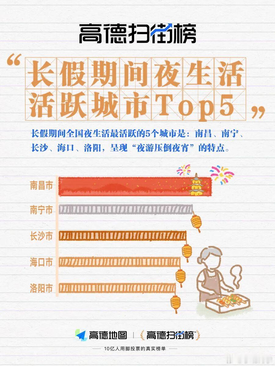 高德十一为线下餐饮带去1亿人 十一小长假结束,高德扫街榜发布《2025国庆中秋长假出行消费报告》,从各个维度给出了十一长假全国网民出游的数据统计,其中烟火城市榜中丽江、乐山和大理排名前三;美食吸引力城市榜前三是成都、重庆和广州;夜生活活跃城市前三是南昌、南宁和长沙;美景吸引力城市榜前三是北京、成都和重庆;另外还有“奔县”景区、驾车亲子游热门景区、公厕密度排名、母婴室密度排名、公园数量排名等。