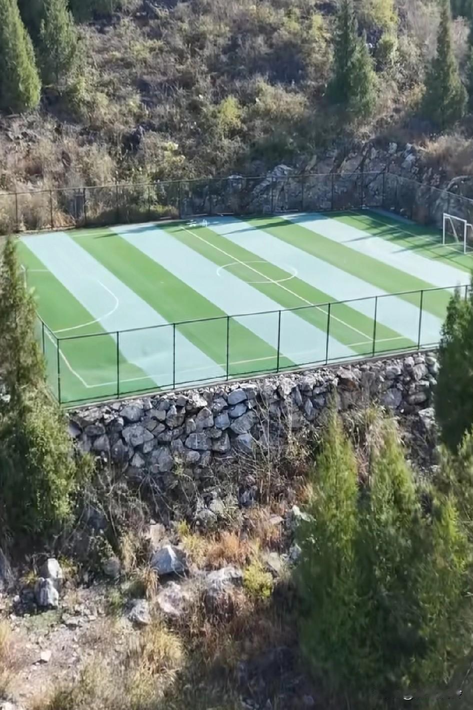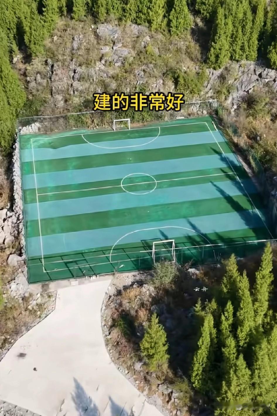 荒山野岭竟然有一个球场,谁建的,给谁来踢?上锁了,别人一般进去不了!! 看场地磨