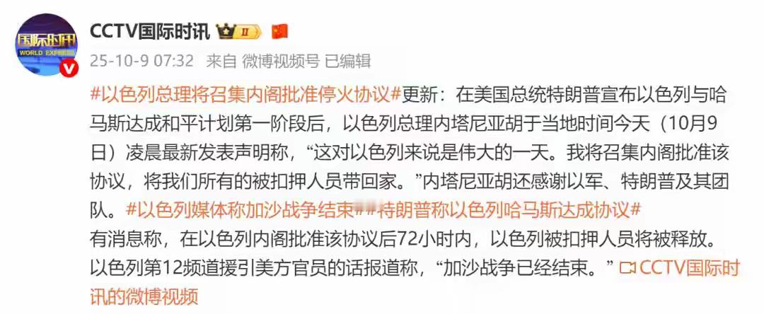 愿加沙人民的苦难早点结束。愿以色列人民有一个平静安宁的生活。